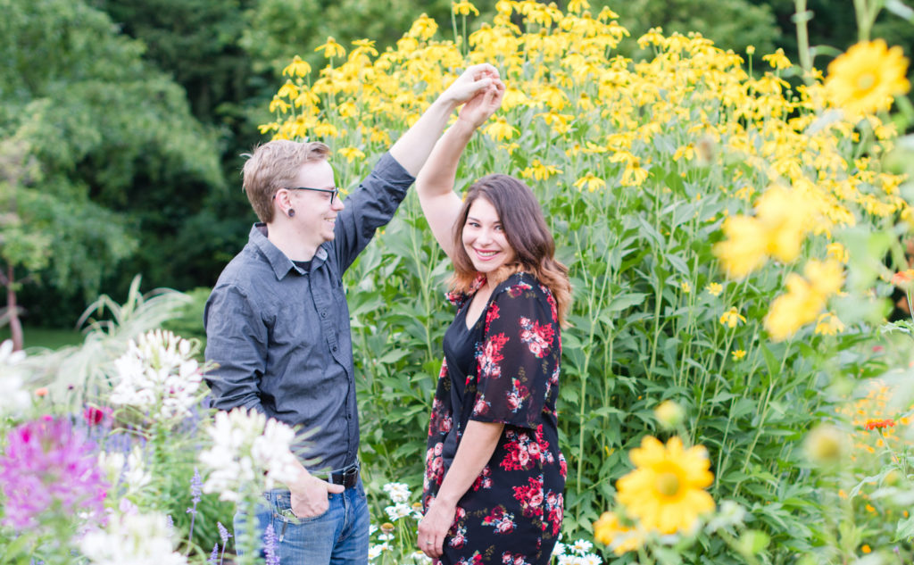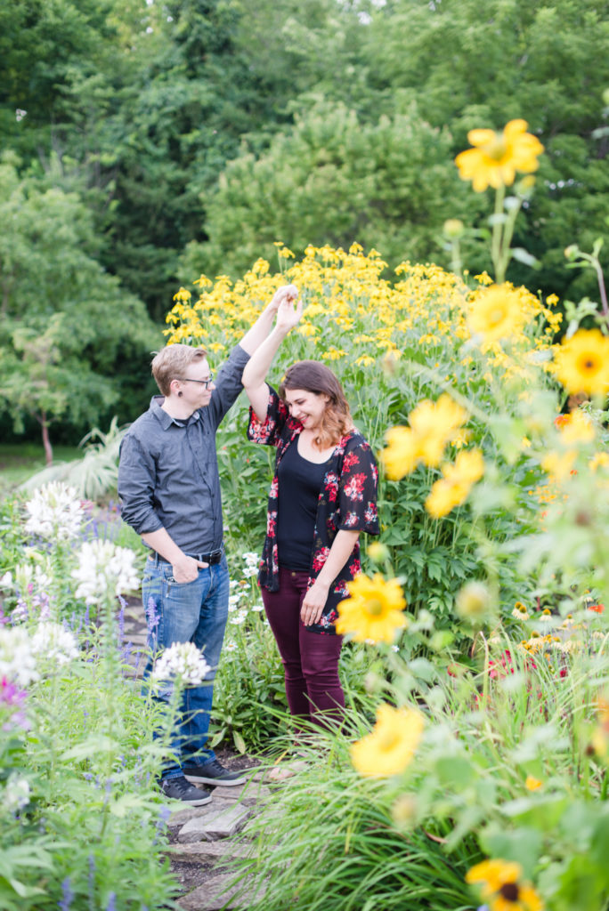 Every engagement session I do I get the chance to know more about my couples. Kim and Chris had chosen Inniswood Metro Parks because they love the environment and exploring together. They were telling me how Kim had accidentally caught a turtle on a dare that it wasn’t a turtle she was touching. Nature definitely showed up during our shoot. We saw deer, golden finches, and bunnies. It was beautiful! I’m so happy to take part in your wedding this fall!