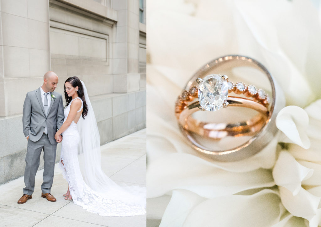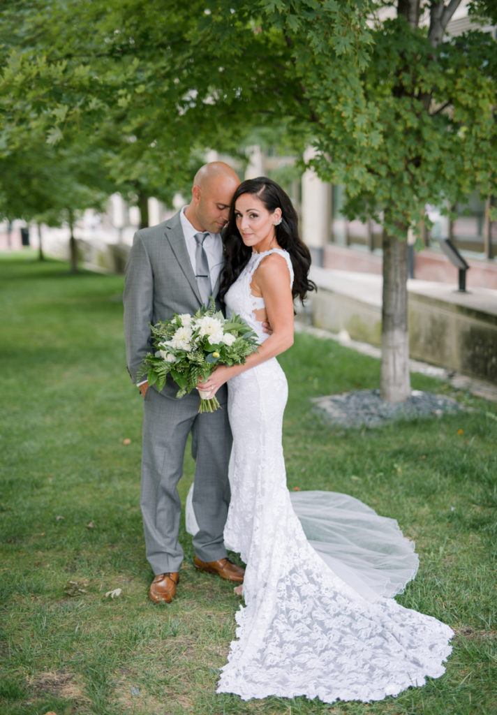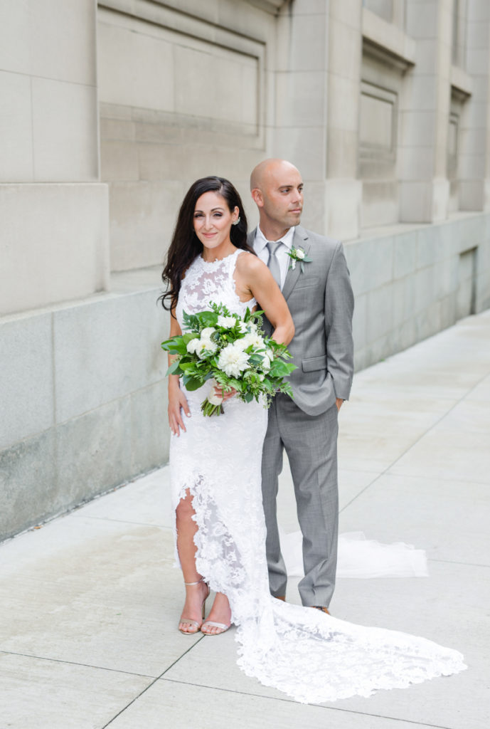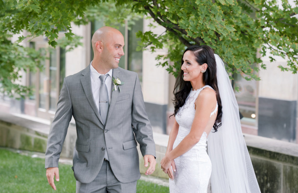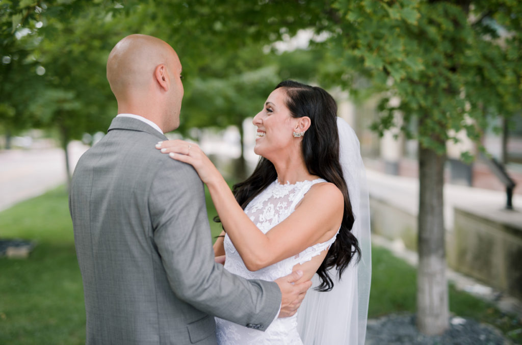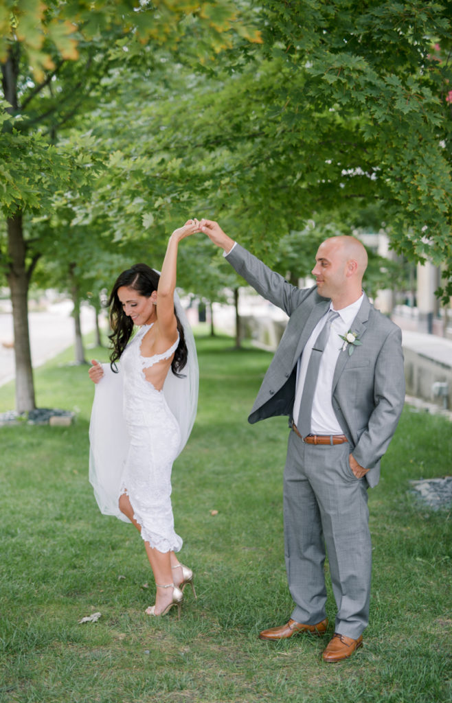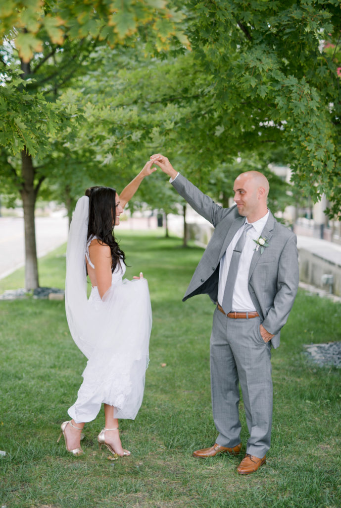 What a beautiful wedding day! I knew from the moment that I sat down with Danielle and Benjamin that our styles matched up. Danielle told me about having the reception at de-NOVO bistro downtown, and the building by itself is stunning and dripping with chandeliers. I love how she kept the rest simple, with touches of greenery, twig, and gold. And when she showed up, I was truly floored by how beautiful she looked in her Grace Loves Lace gown. We decided to do a first look, and I loved seeing Ben’s face light up when he turned around to see her. The rest of the day went so quickly because her entire bridal party, family, and friends were having such a good time. It’s not hard to take pictures when everyone at the party wants to talk with you and pose! Thank you SO much Danielle and Ben, for including us in your day.