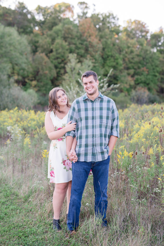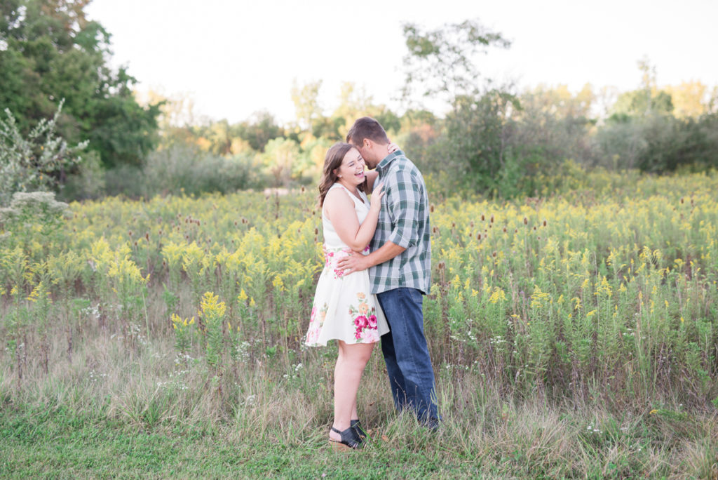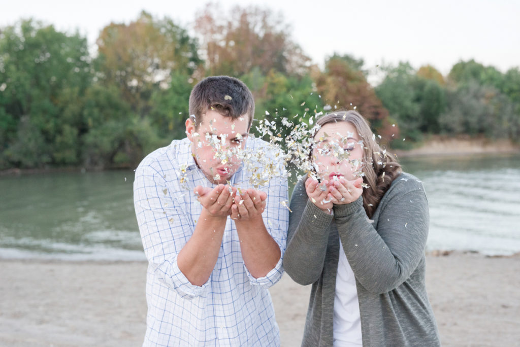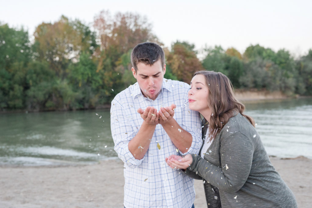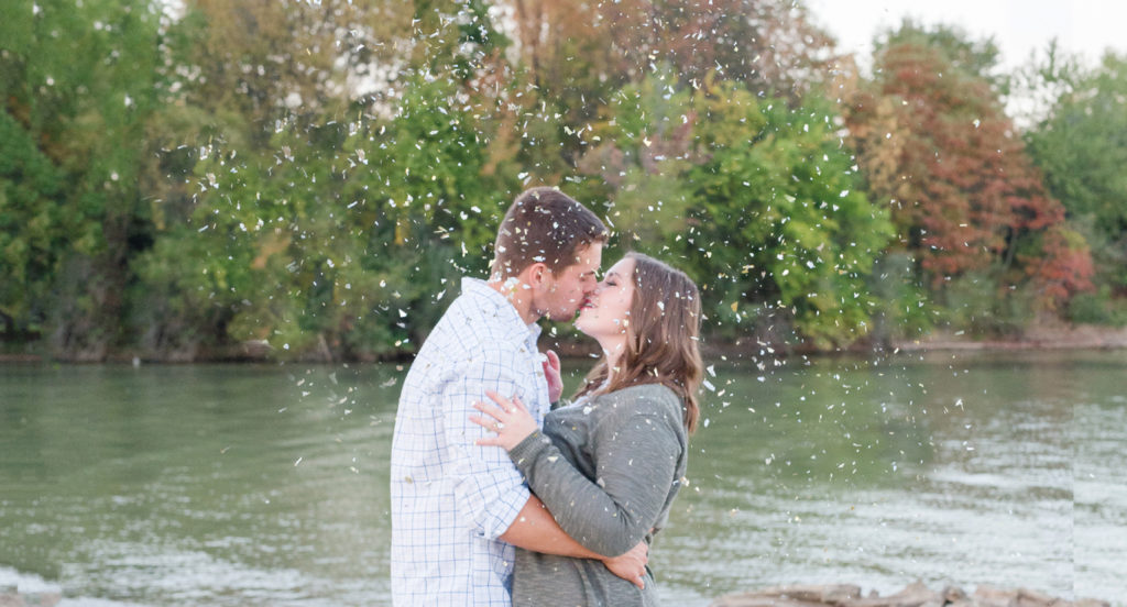 Wow, this shoot makes me want to get every couple in the water. When I met with Emily, she excitedly talked with me about finding a spot near a lake or river for Scott, because he loves the water. He must have been happy because these two could not stop smiling. They are one of the most giggly couples I’ve photographed, and I LOVED it! I hesitantly had brought up the idea of actually getting in the water at the end of the shoot, and I’m so happy these two went along with it. Thankfully it was one of those abnormally warm days for early fall. They cuddled and splashed and it seemed like the had the whole creek to themselves. We also played with glitter. It was so much fun!