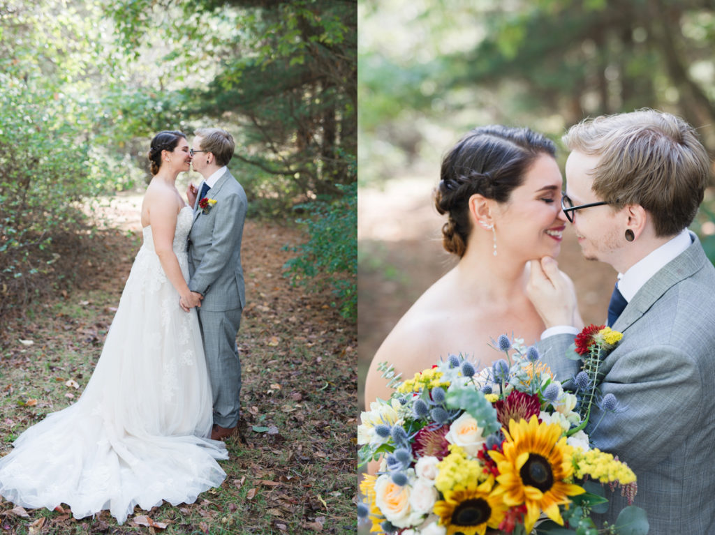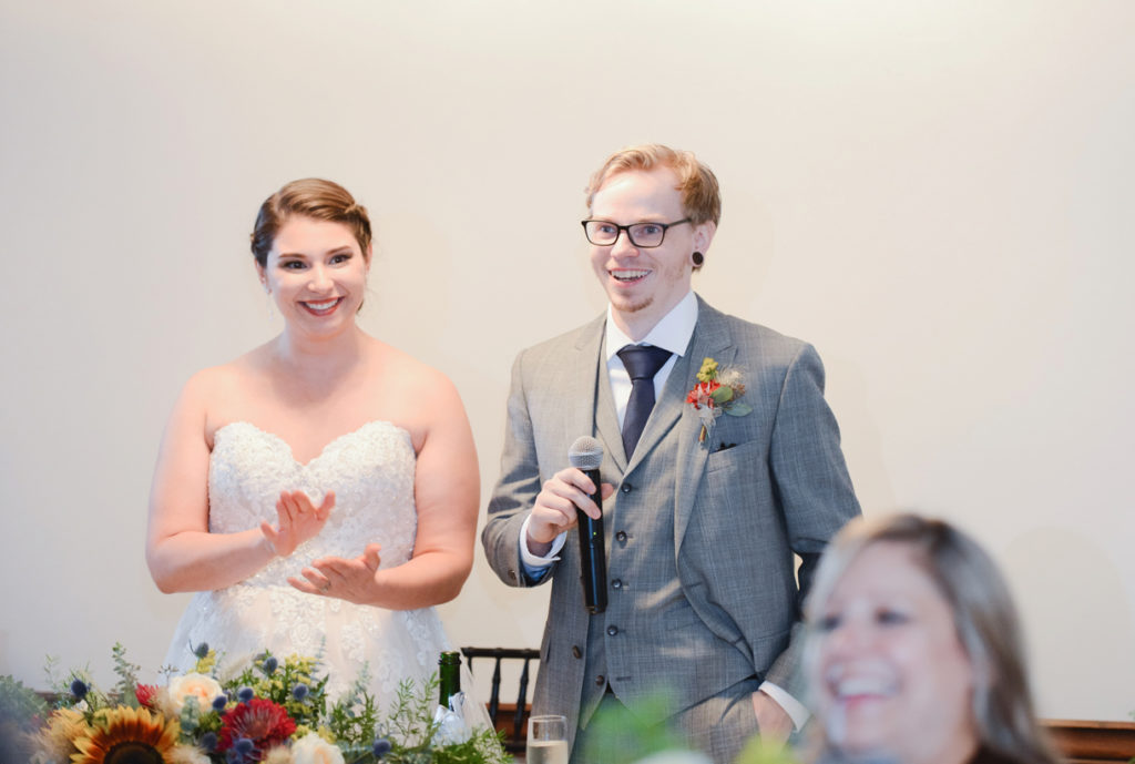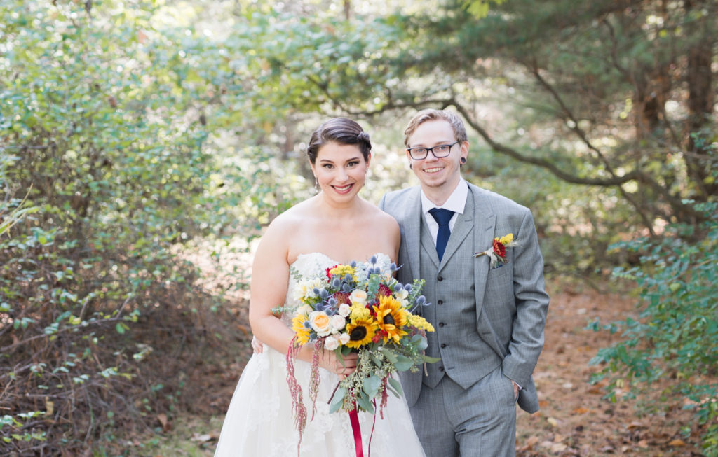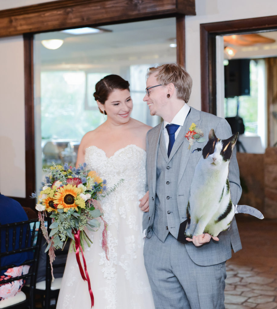 I loved the uniqueness of this wedding. When I first met Kim and Chris, I had a blast hearing about the special touches to their day. They were going to get married at the top of a hill on a beautiful location (with an emu) and geodes would be the highlighting feature. They both love nature, Kim is an environmental advisor, and Chris’s family used to have a store that sold geodes. I can honestly say, I took my favorite “ring shot” ever with one of them. One of her best friends did her bouquet as one of her first wedding arrangements, and it’s so intensely pretty. I love how the day was just fun because it was about what made them happy. Kim’s sister pulled out a giant cardboard cut-out of her cat right before the ceremony and she cried. That cat got to be carried down the aisle, stood next to them as they got married, snuck in some family pictures, and even got to be announced in with the new husband and wife. It was the first time I had heard Radiohead (my favorite band) during the reception and also Sandstorm by dj Tiesto. It was one-of-a-kind and totally them, and we were excited to be there!