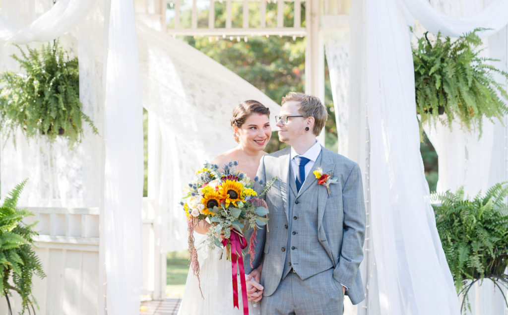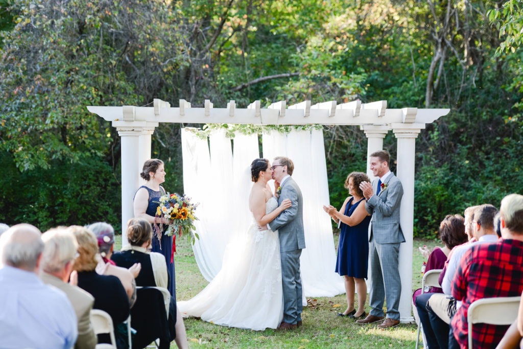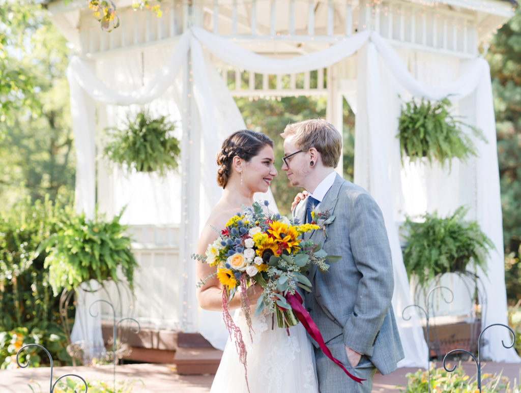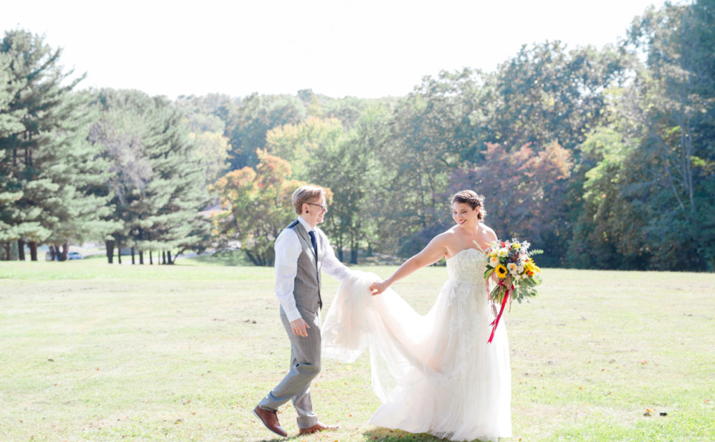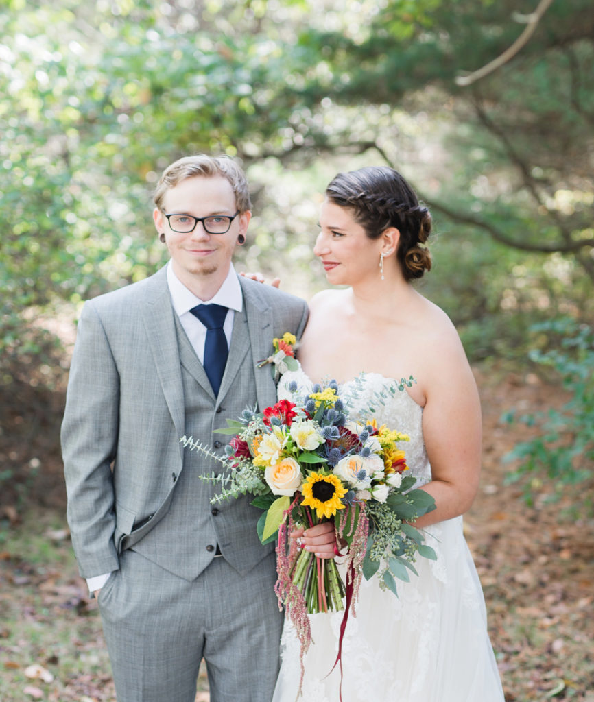 I loved the uniqueness of this wedding. When I first met Kim and Chris, I had a blast hearing about the special touches to their day. They were going to get married at the top of a hill on a beautiful location (with an emu) and geodes would be the highlighting feature. They both love nature, Kim is an environmental advisor, and Chris’s family used to have a store that sold geodes. I can honestly say, I took my favorite “ring shot” ever with one of them. One of her best friends did her bouquet as one of her first wedding arrangements, and it’s so intensely pretty. I love how the day was just fun because it was about what made them happy. Kim’s sister pulled out a giant cardboard cut-out of her cat right before the ceremony and she cried. That cat got to be carried down the aisle, stood next to them as they got married, snuck in some family pictures, and even got to be announced in with the new husband and wife. It was the first time I had heard Radiohead (my favorite band) during the reception and also Sandstorm by dj Tiesto. It was one-of-a-kind and totally them, and we were excited to be there!
