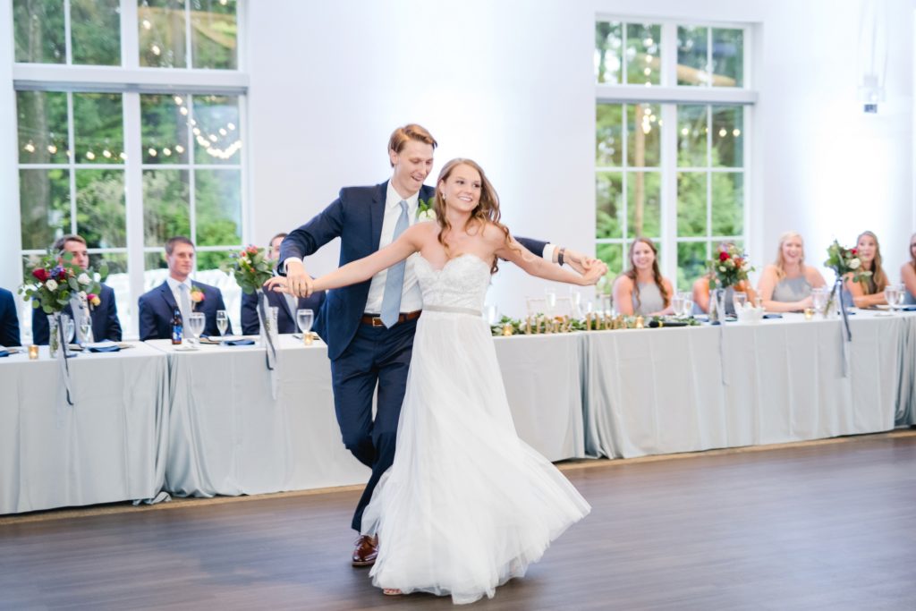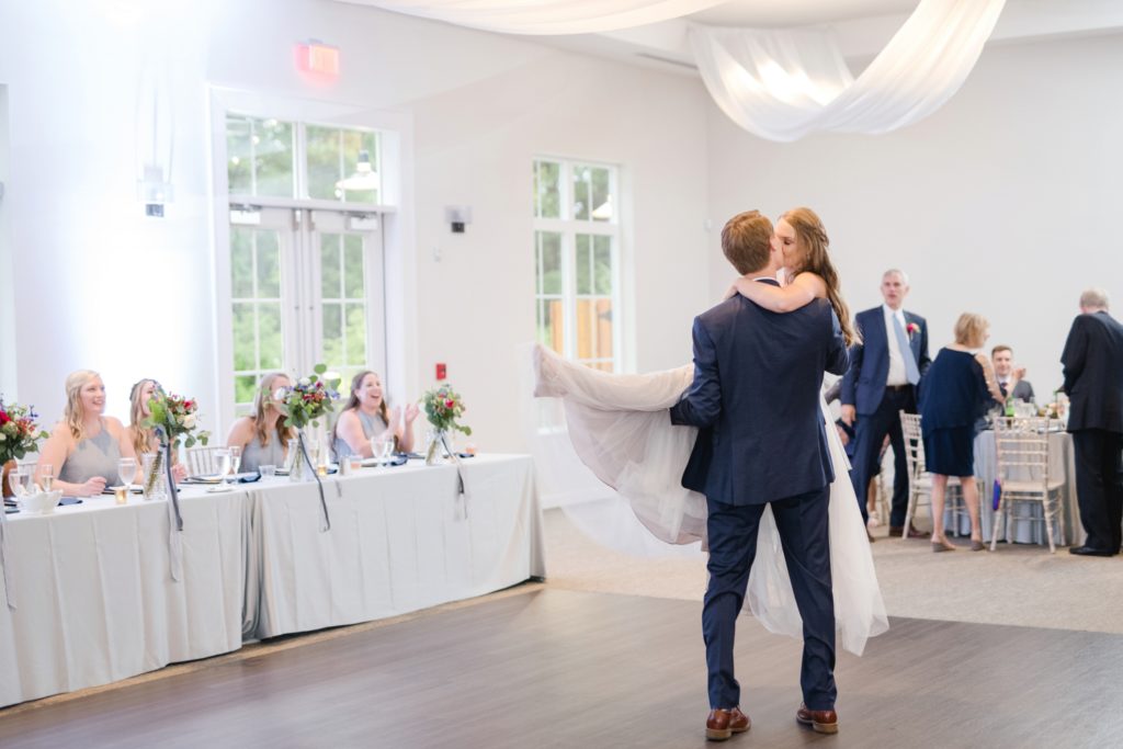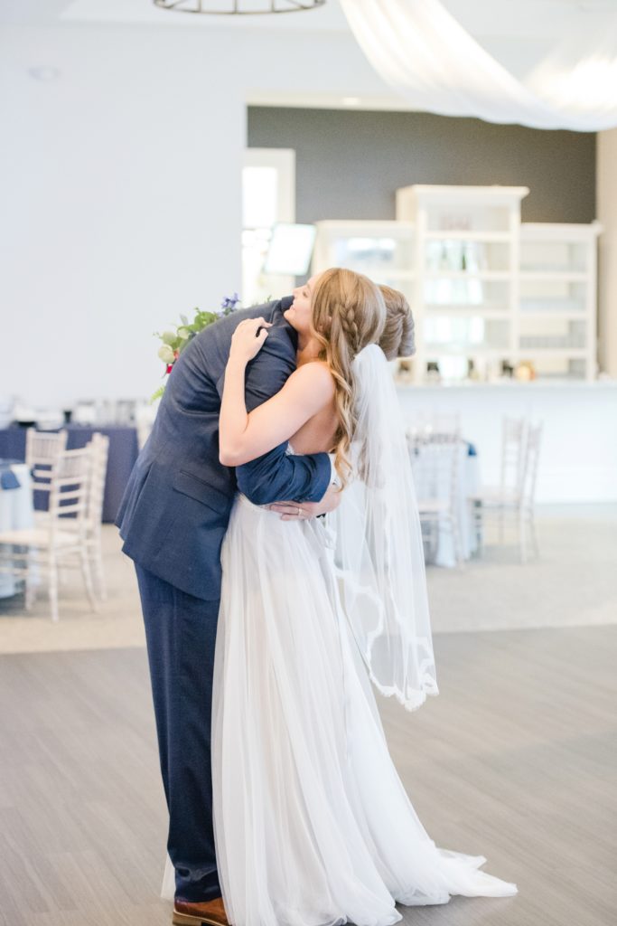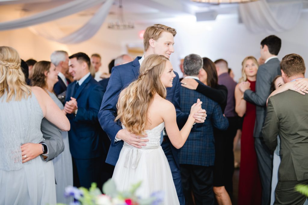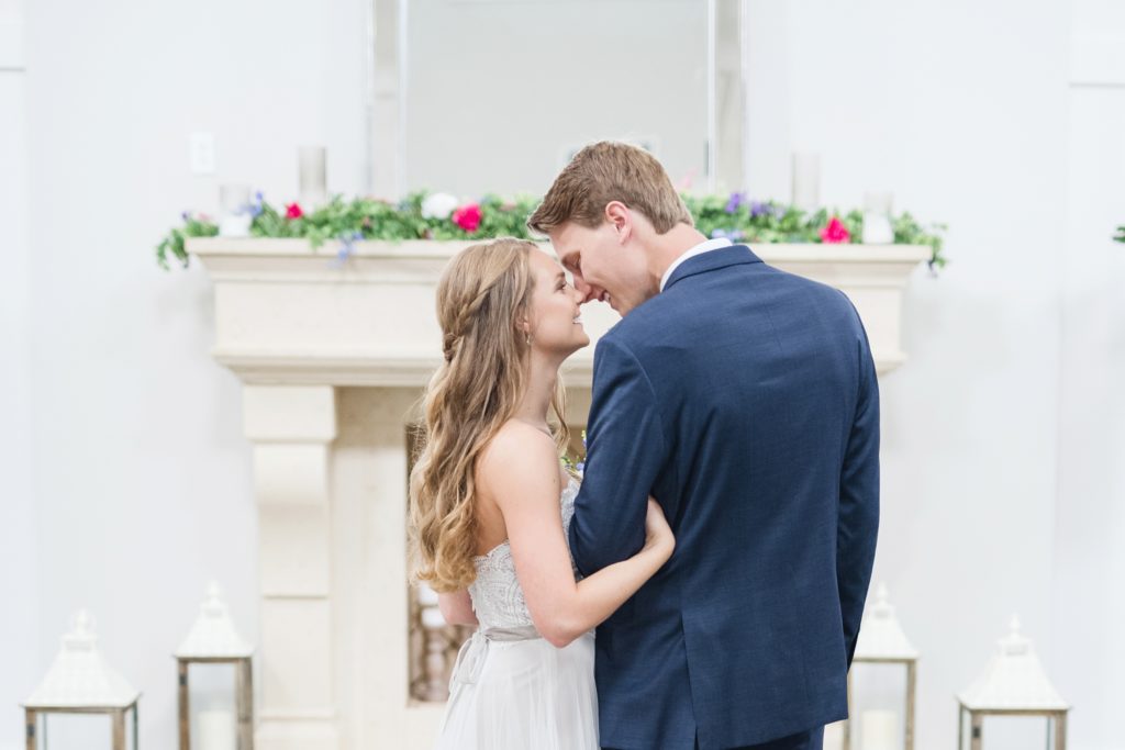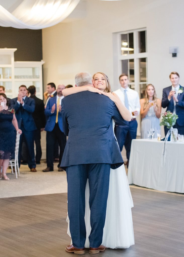Because of the results of some tropical storm or other, it rained all day. It didn’t matter one bit. The Estate at New Albany is a BEAUTIFUL space even without venturing outside. I’ve always wanted to photograph around a candle-lit fireplace. Haley was stunning and her groom cried when he first laid eyes on her. They had an emotional ceremony, and as they were announced as husband and wife the crowd threw dried petals on them. I love how they immediately found themselves at the dance floor hugging and having a personal moment, just the two of them.