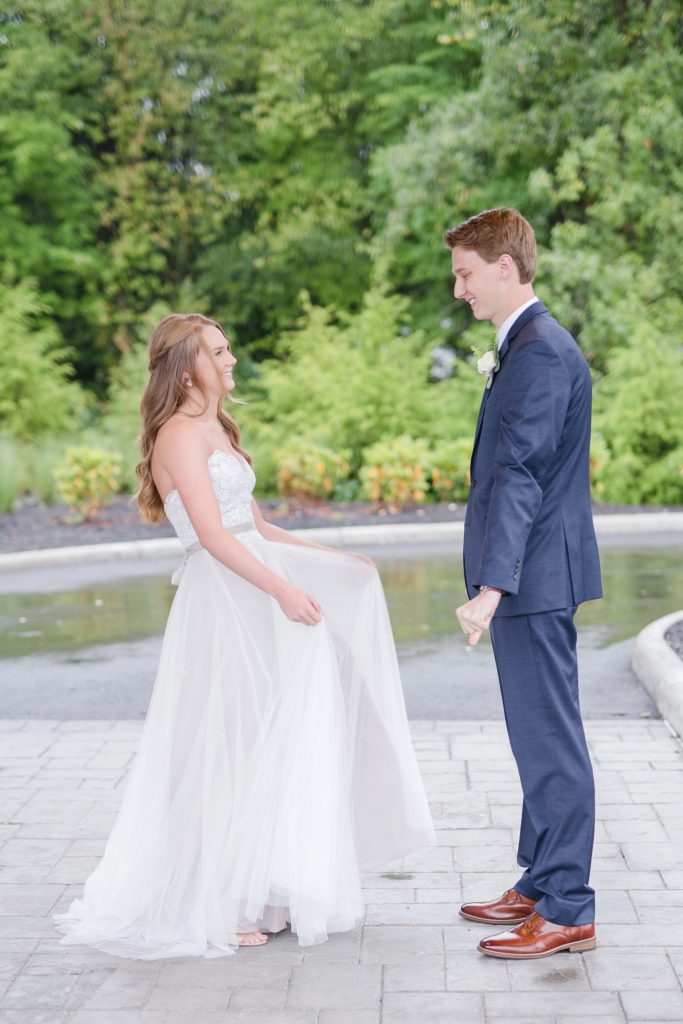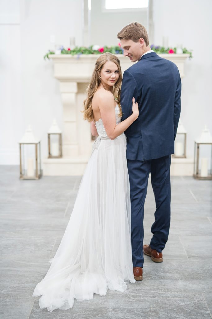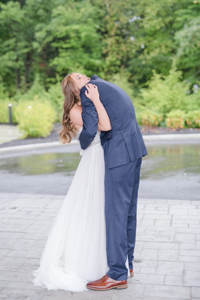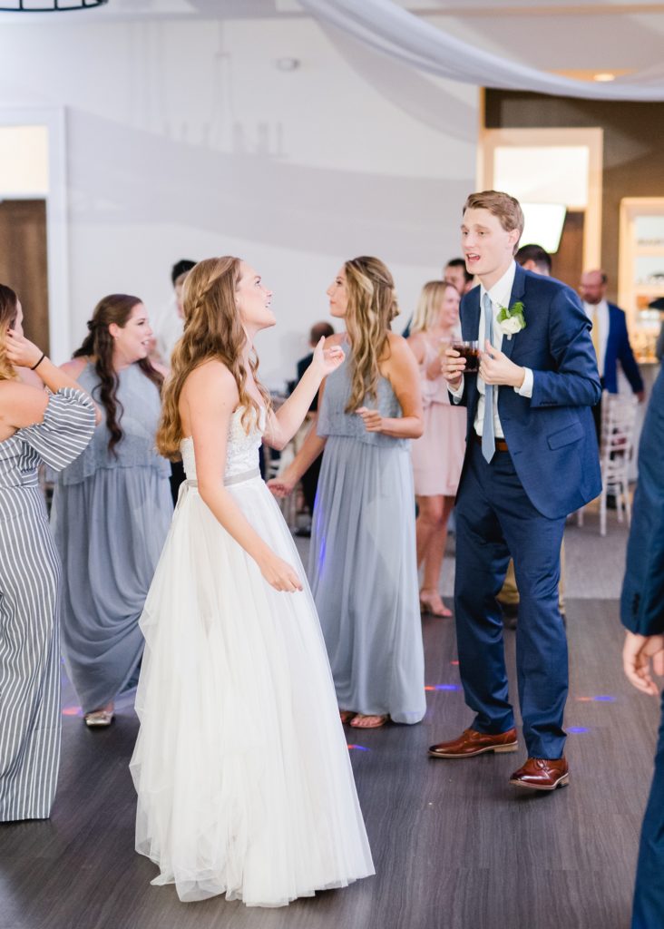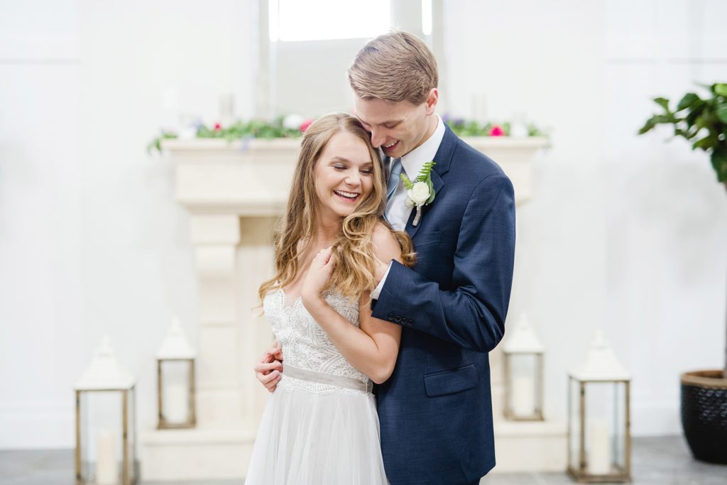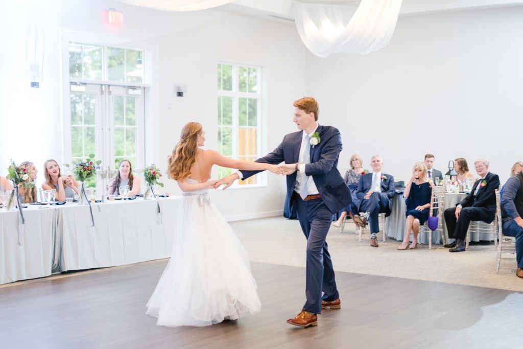 Because of the results of some tropical storm or other, it rained all day. It didn’t matter one bit. The Estate at New Albany is a BEAUTIFUL space even without venturing outside. I’ve always wanted to photograph around a candle-lit fireplace. Haley was stunning and her groom cried when he first laid eyes on her. They had an emotional ceremony, and as they were announced as husband and wife the crowd threw dried petals on them. I love how they immediately found themselves at the dance floor hugging and having a personal moment, just the two of them.