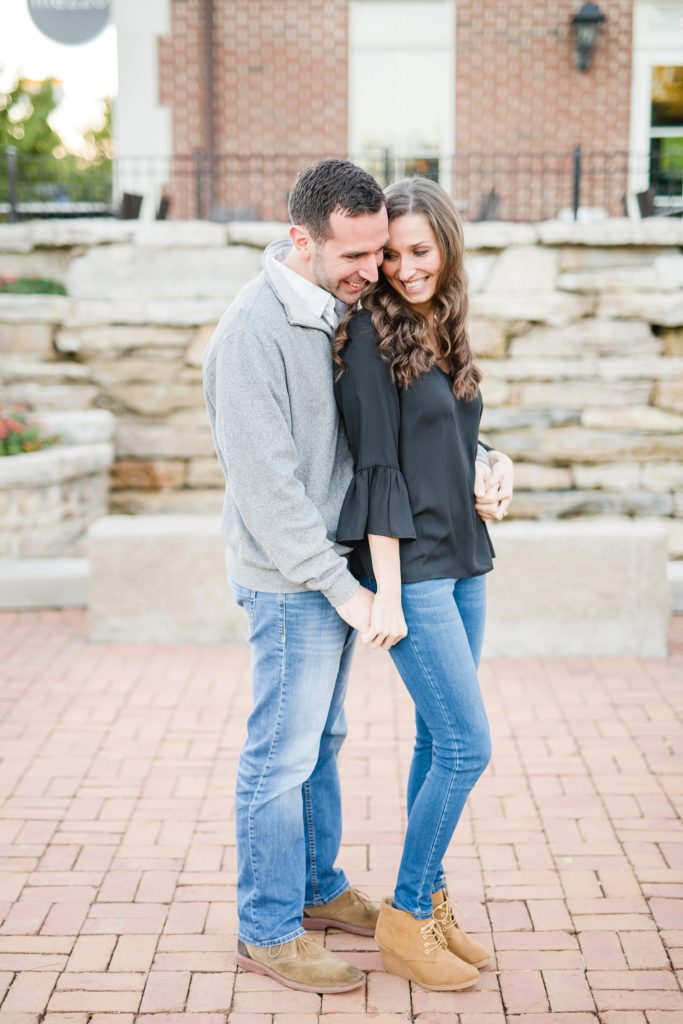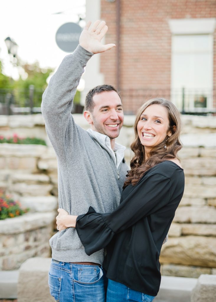 What a fun night with these two. Rachel and Harry live near Chicago, so I’ve only gotten to know them and their cute pup through Skype. I LOVED watching them interact. Harry is very outgoing (see picture of him waving to random strangers during our shoot), and he makes Rachel’s face light up.