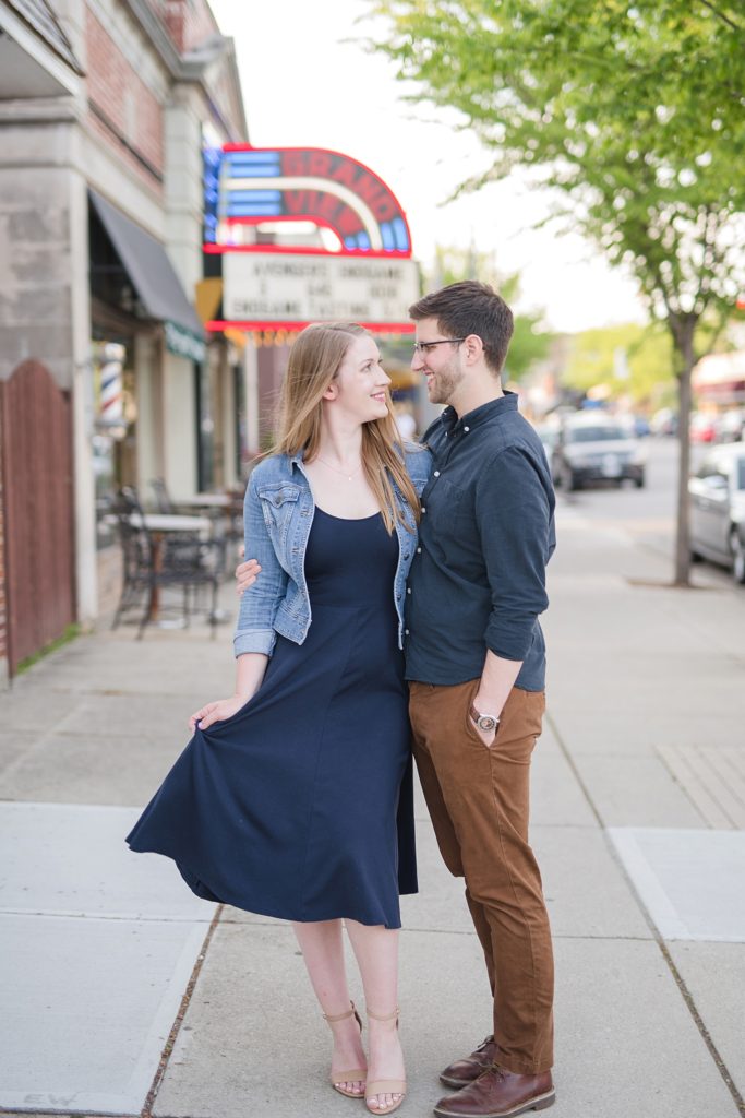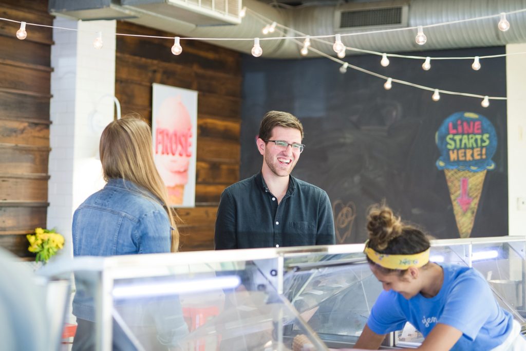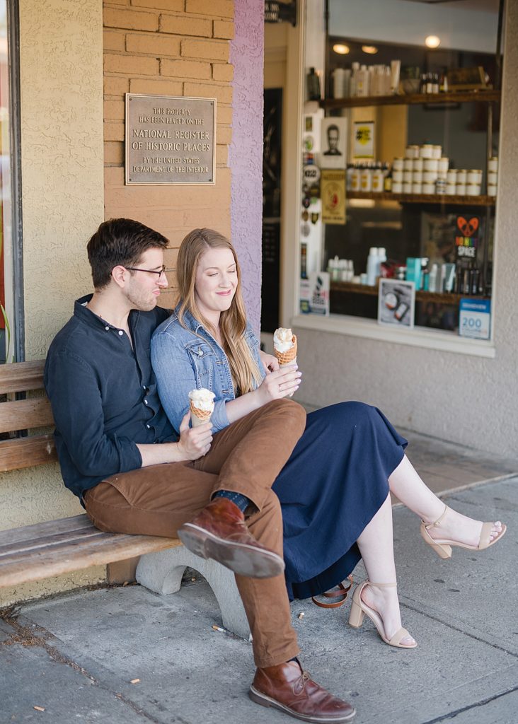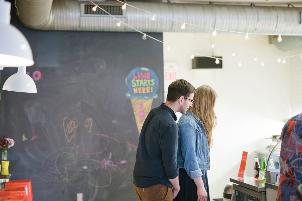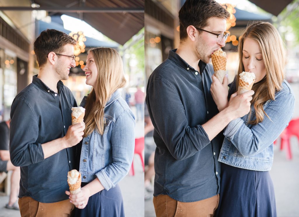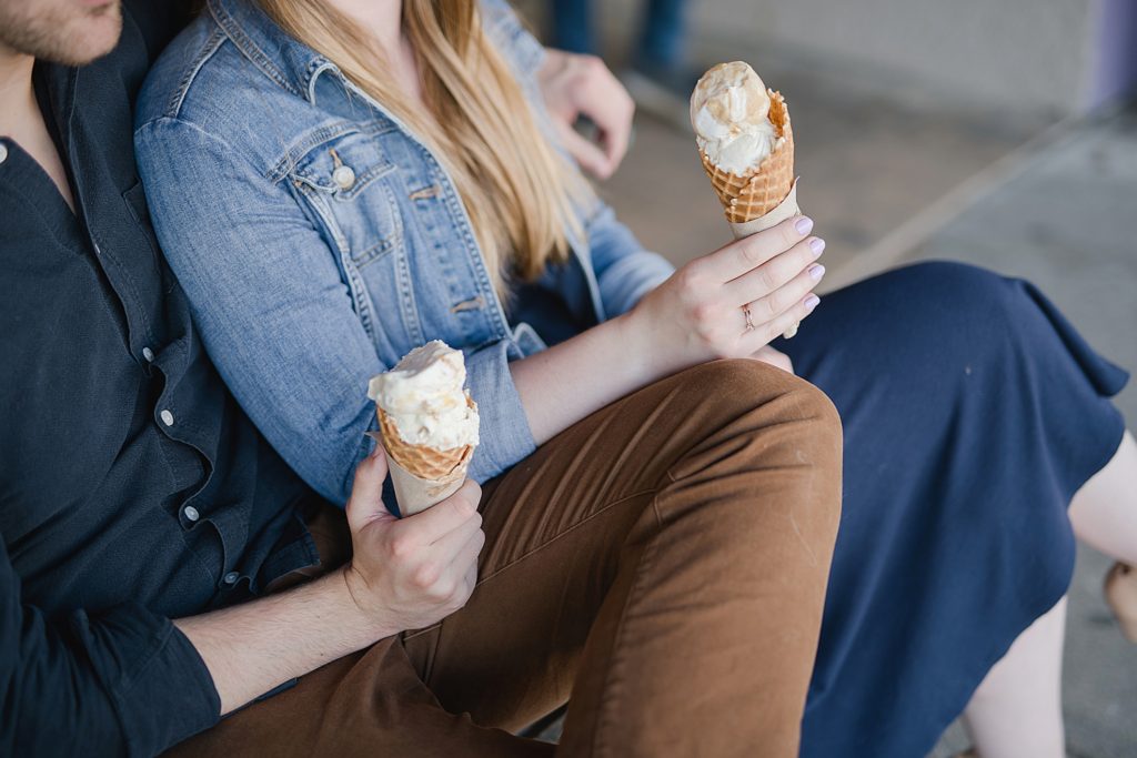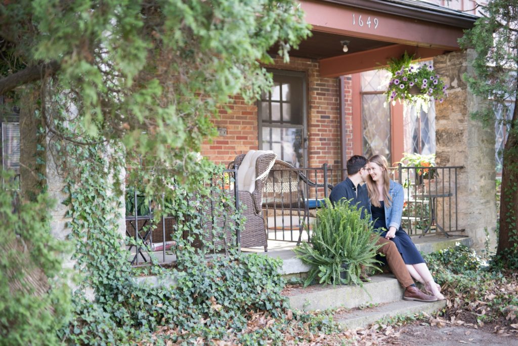 I knew when I met with them that Erin and Austen waned their engagement photos to just feel like ‘them’. We wanted to sit on their front porch, a place they always sit. We wanted to walk down the block to downtown Grandview, something they would normally do. We got a few ice cream cones from Jeni’s, a place that Erin used to work (working at Jeni’s may be my OTHER dream job if we weren’t photographers). I even got to meet their cats.