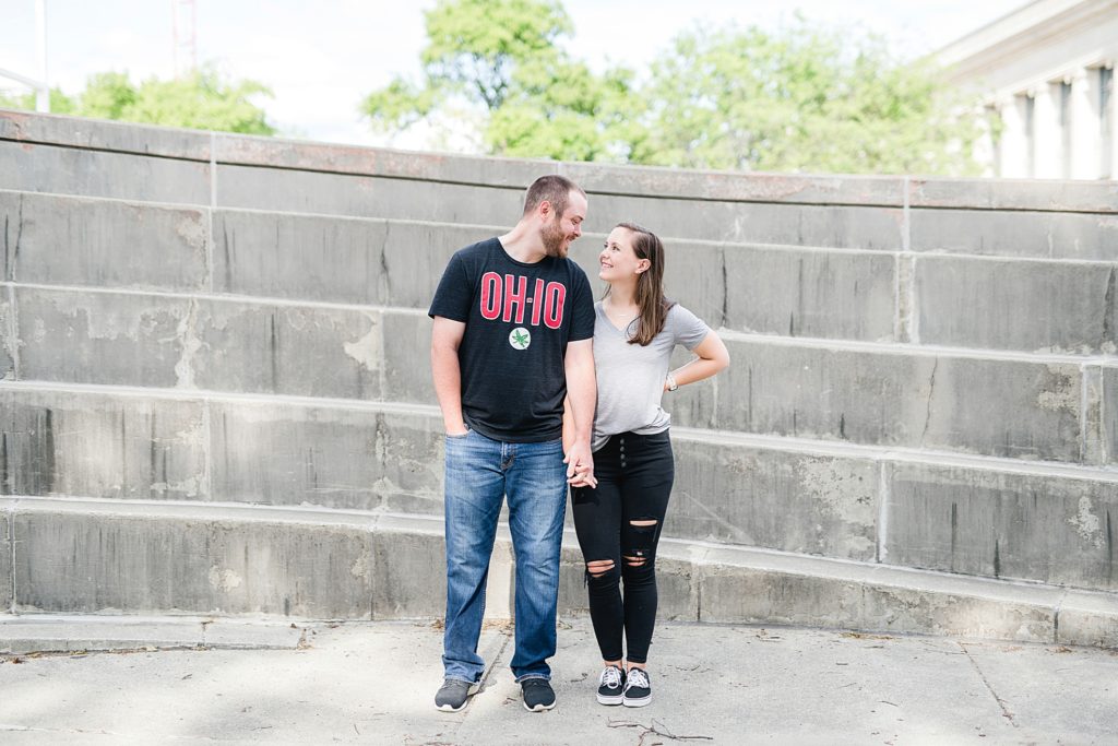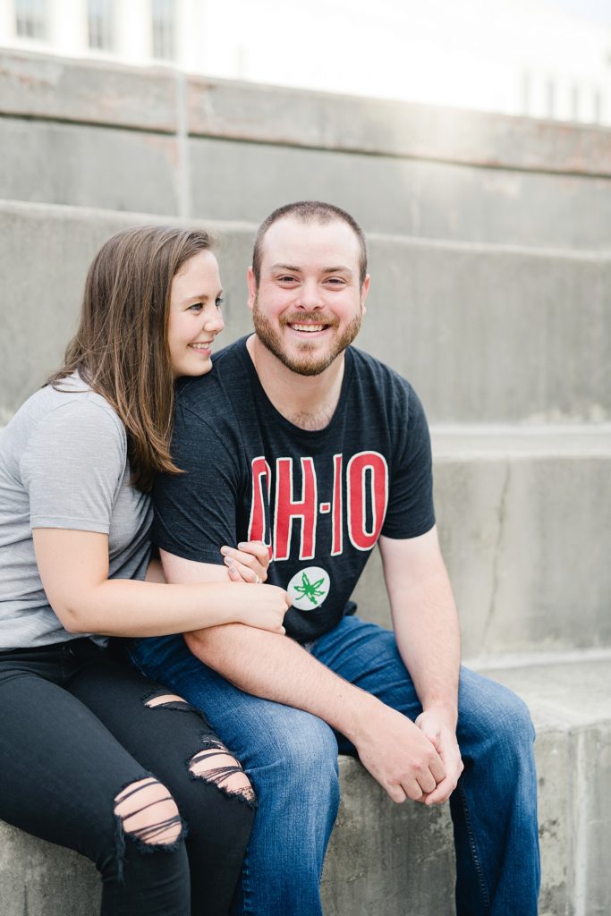 Cody and I met at Ohio State, so I loved hearing about Jessica and Colby meeting when they were in the Block O. We had to return to campus for photos obviously, and we had the whole place to ourselves. These two are so easy-going and I can tell just how fun their wedding day is going to be. We finished up by spending the evening at the Scioto Mile, where Colby had proposed to Jessica. Colby proposed with his family hiding out, which I LOVE the idea of. It’s great to be able to do our sessions in places that are meaningful. I can’t wait to celebrate their marriage soon! Congrats you two!