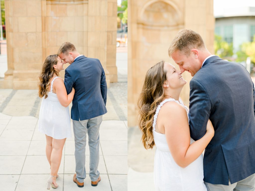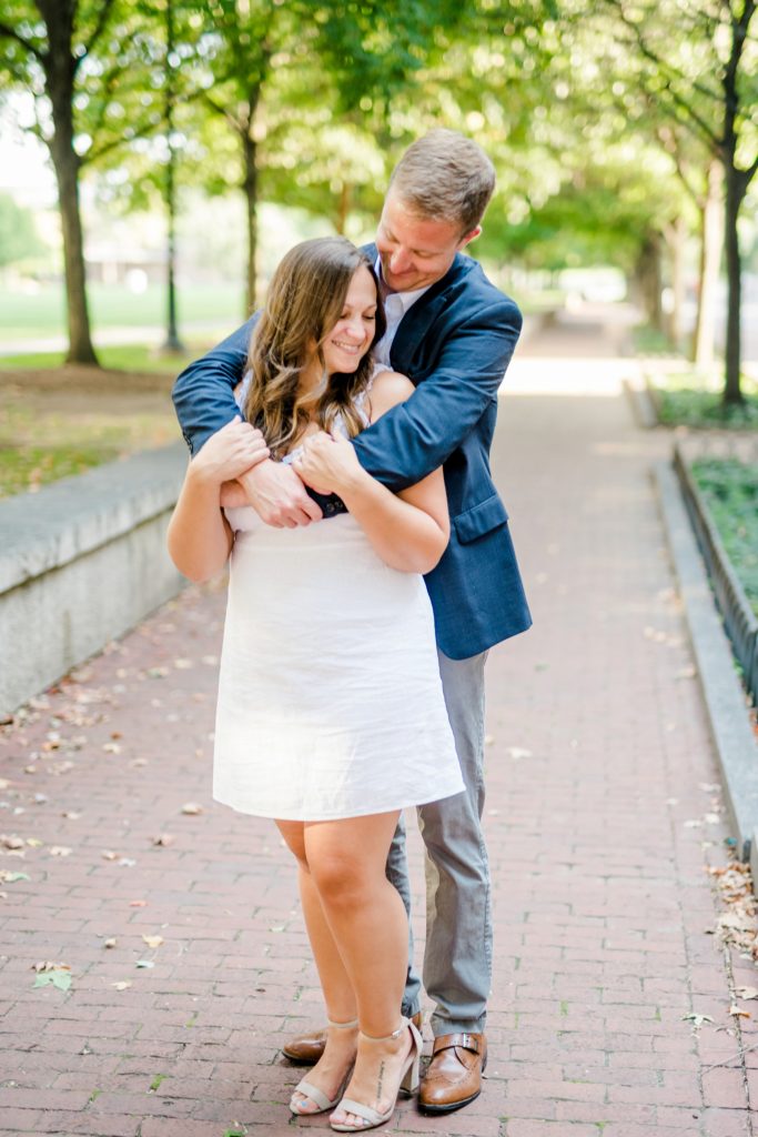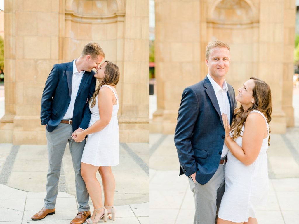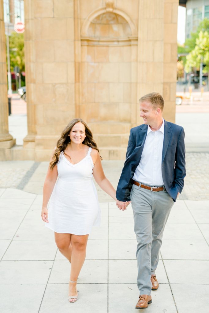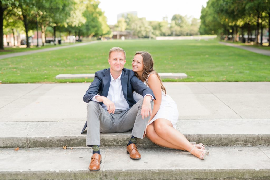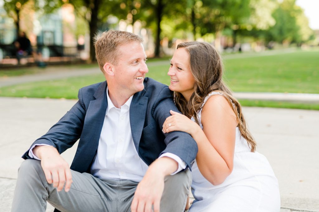 When I first sat down with Maura and asked what was most important about her future wedding day, she said she wanted it to just feel “happy and easy”. Fast forward to Maura and Sean’s engagement session, and I know why those were the words that she chose. Maura and Sean were so kind, and unassuming. Very happy and easy. We laughed together about the absurdity of taking pictures in a crowd of people (there was a Clippers game that evening, and a LOT of people were milling around) and just generally had a good time exploring Columbus together. I can’t wait for their wedding day, exactly a year from today.