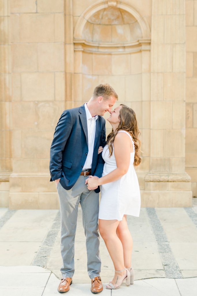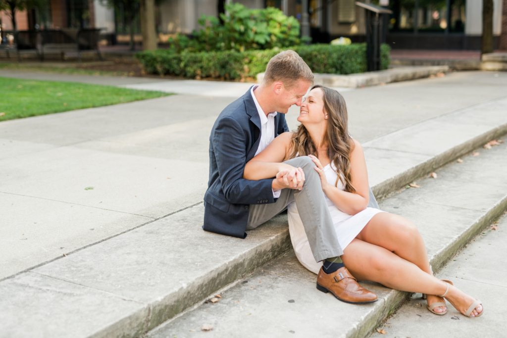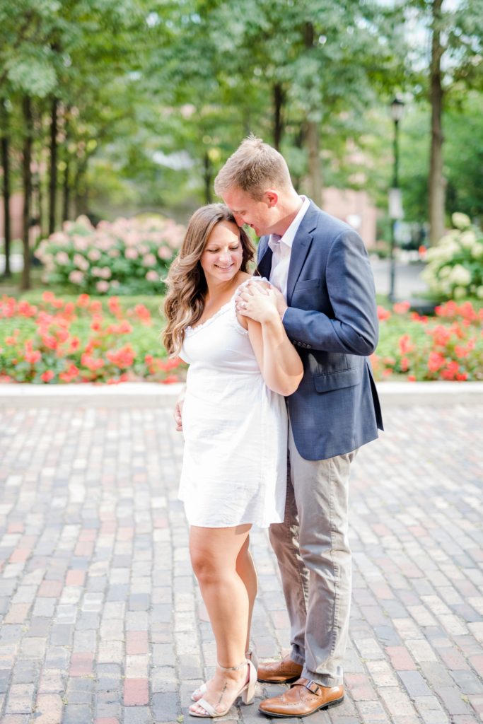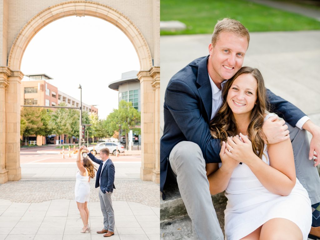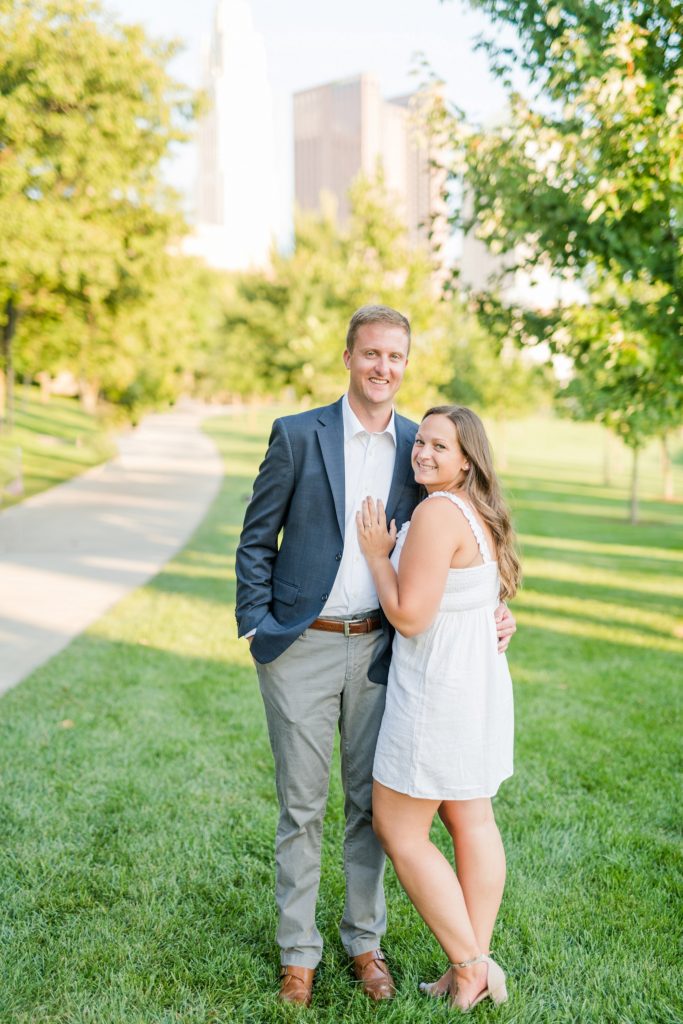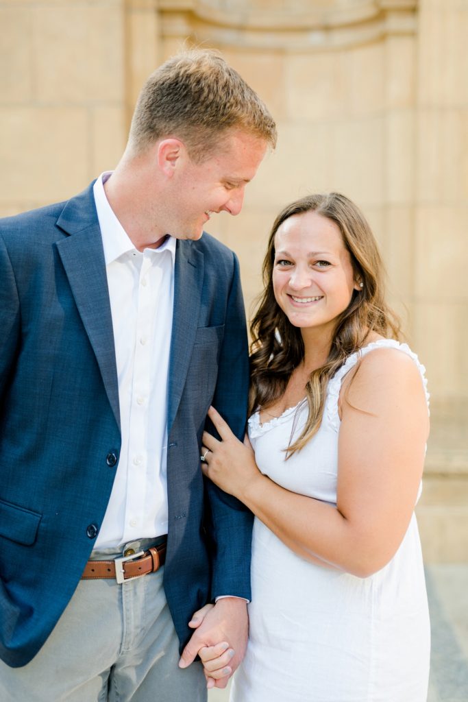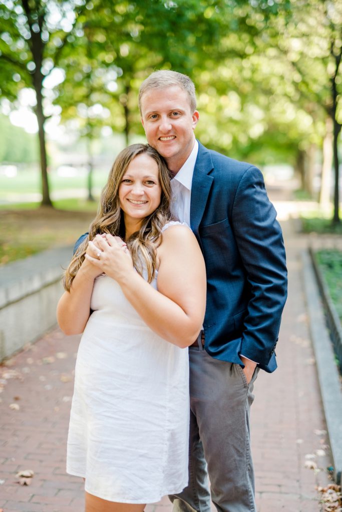 When I first sat down with Maura and asked what was most important about her future wedding day, she said she wanted it to just feel “happy and easy”. Fast forward to Maura and Sean’s engagement session, and I know why those were the words that she chose. Maura and Sean were so kind, and unassuming. Very happy and easy. We laughed together about the absurdity of taking pictures in a crowd of people (there was a Clippers game that evening, and a LOT of people were milling around) and just generally had a good time exploring Columbus together. I can’t wait for their wedding day, exactly a year from today.