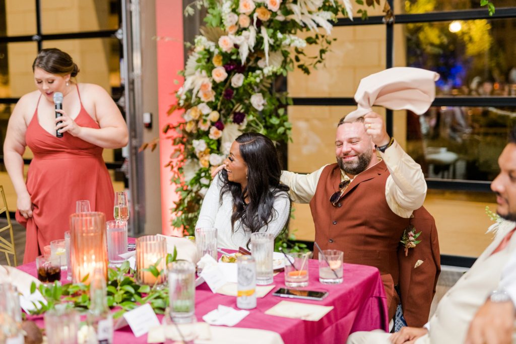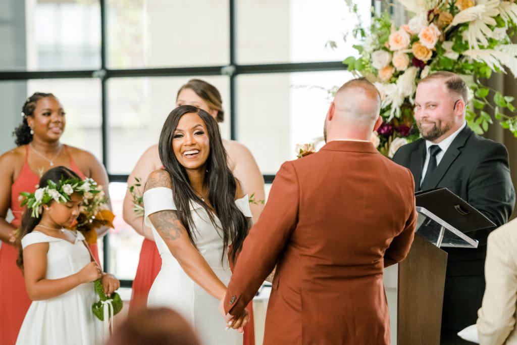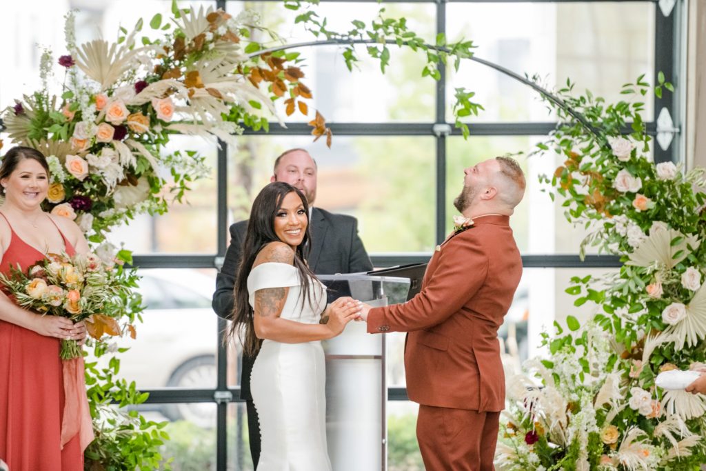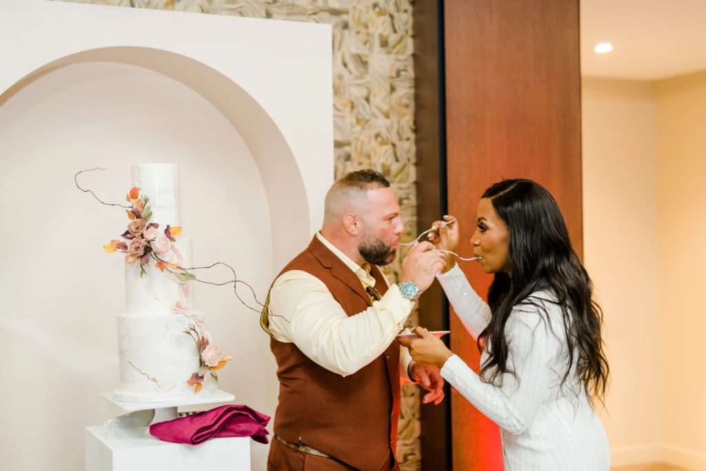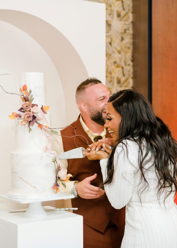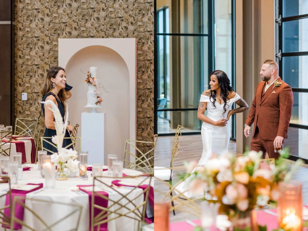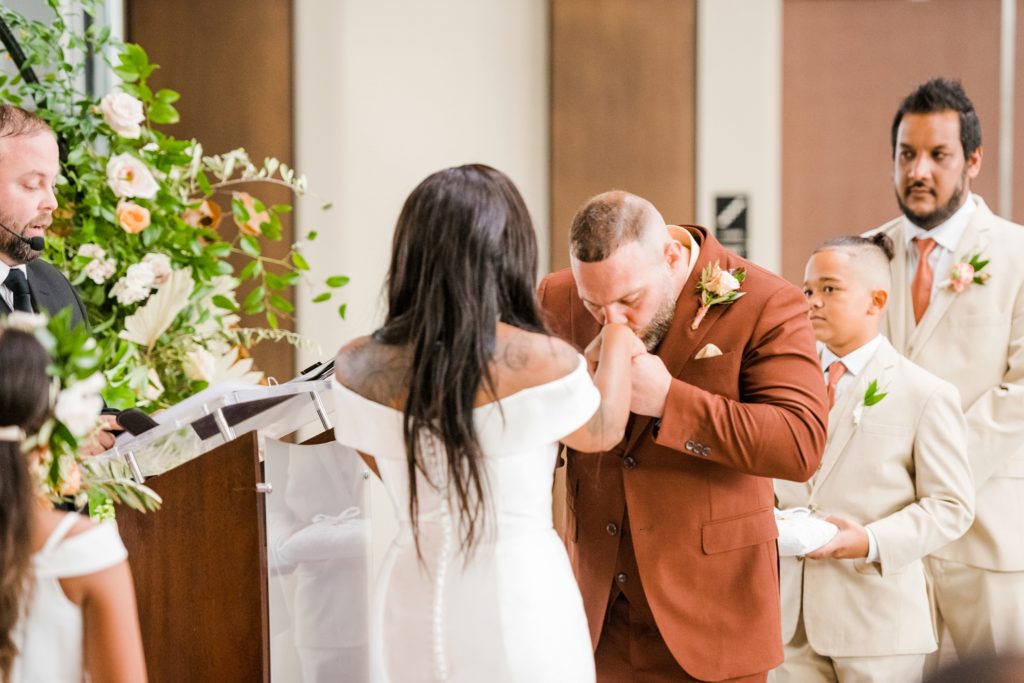 Words can’t describe how beautiful Bri and Tarry’s day was. Though we had surprise pop-up shower of rain, it didn’t dampen anyone’s spirits because Bri and Tarry were just there to celebrate their marriage. Bri is one of the most beautiful people that I know, and Tarry would just light up when he saw her. I loved watching the emotional speeches about Tarry taking care of Bri and her two littles. It’s truly inspiring. This was my first time at the Fives, and I can’t wait to go back again. The team at MMJ Events truly transformed the room and I am digging the autumnal, terracotta vibes. Kuro Neko’s cake somehow looked like real silk ribbon running down the side. I wish I could relive the day over again!