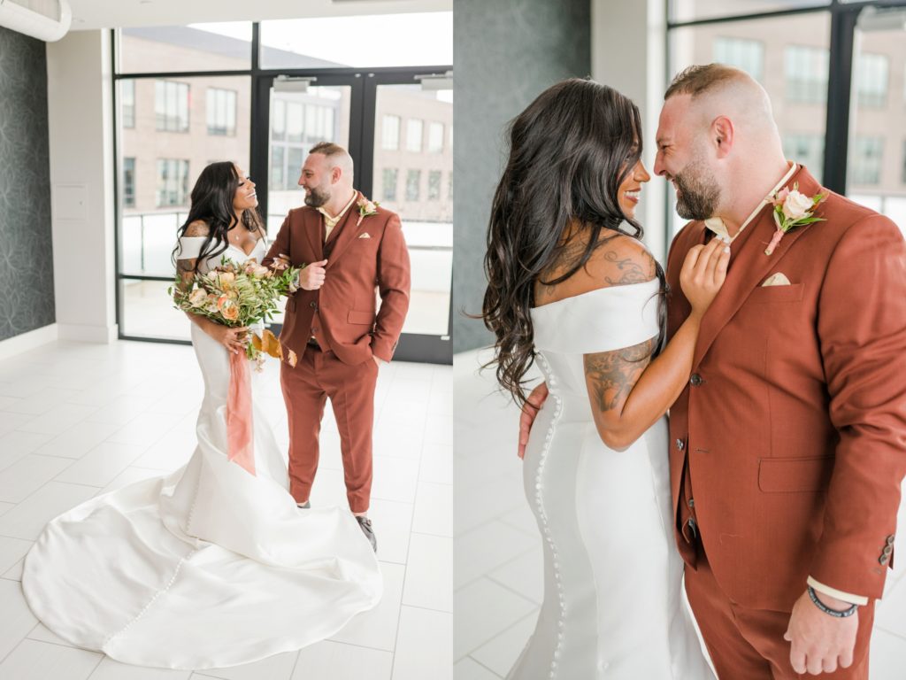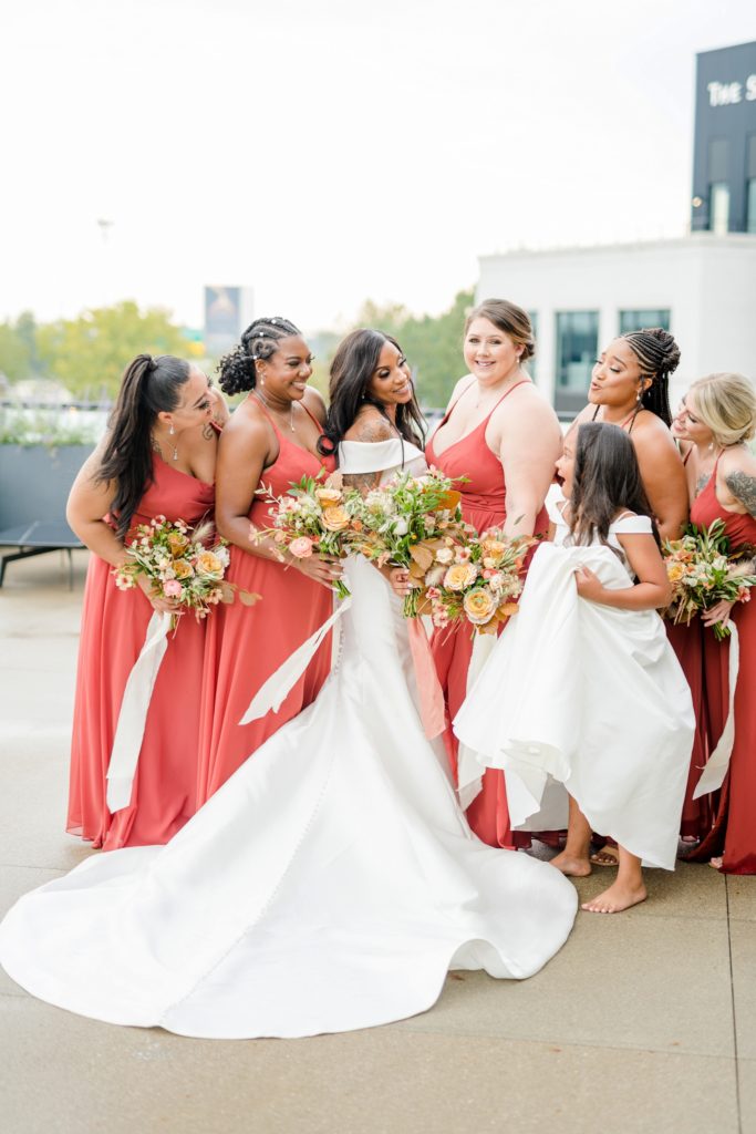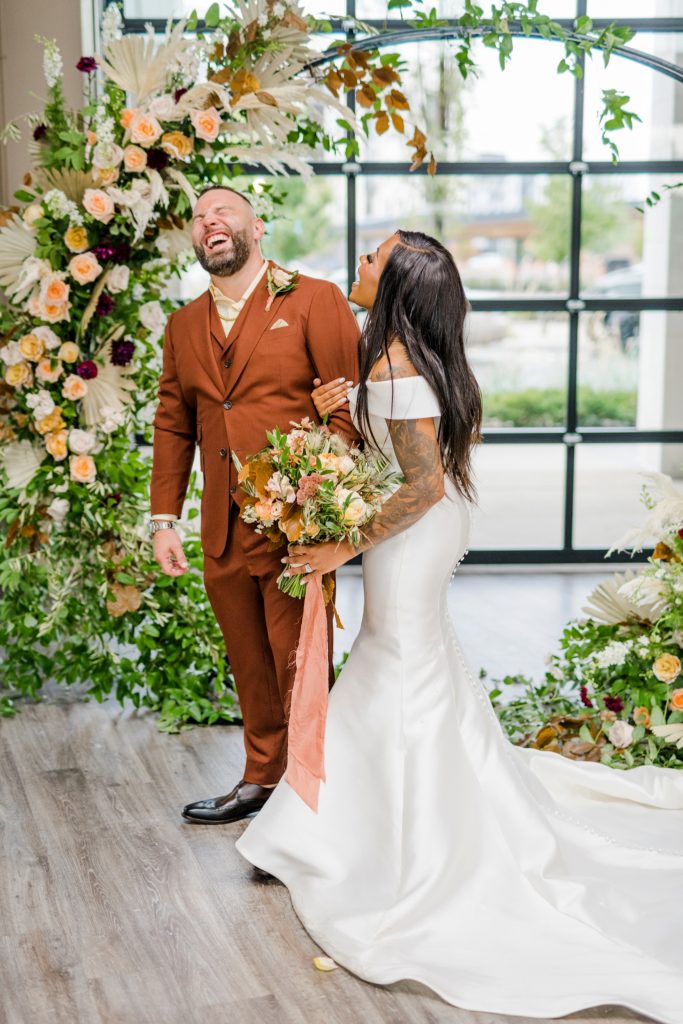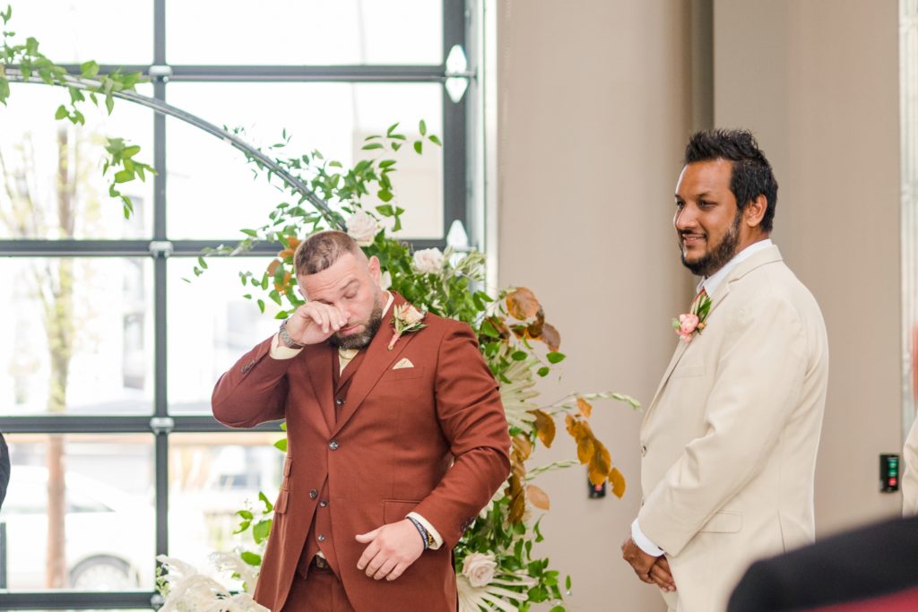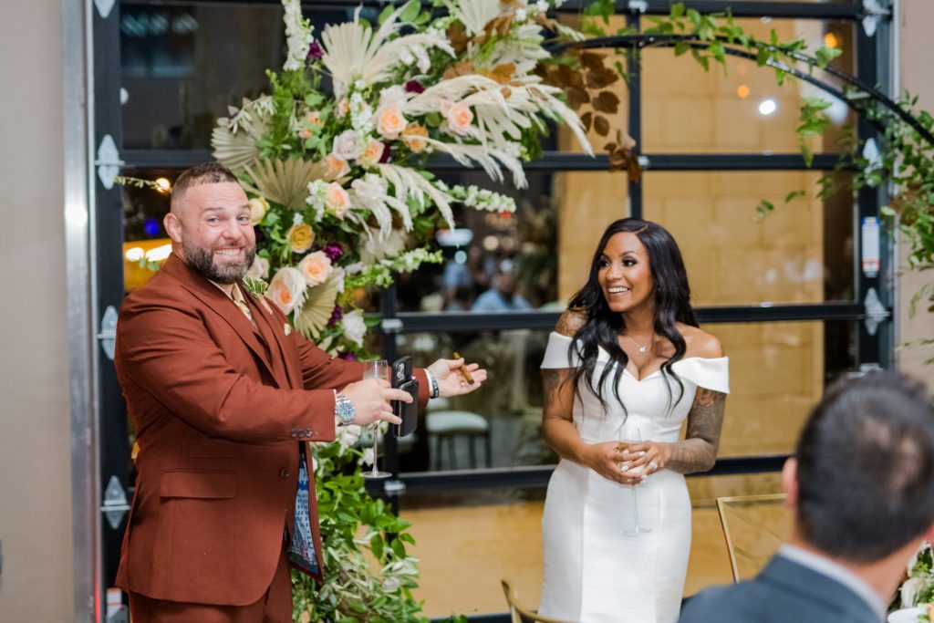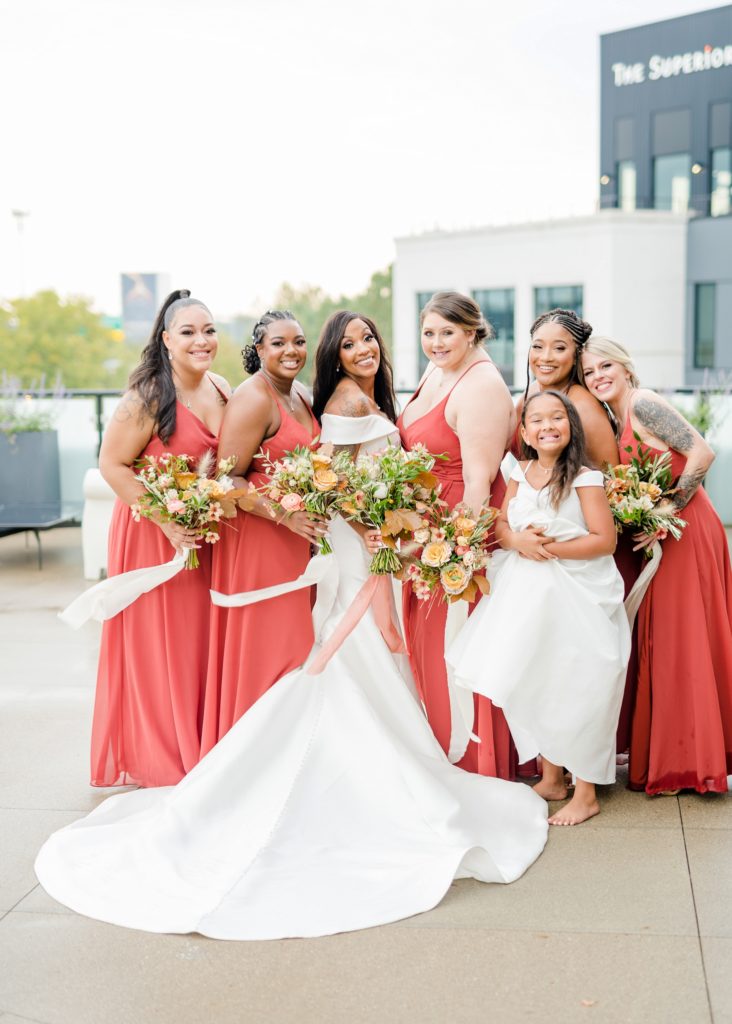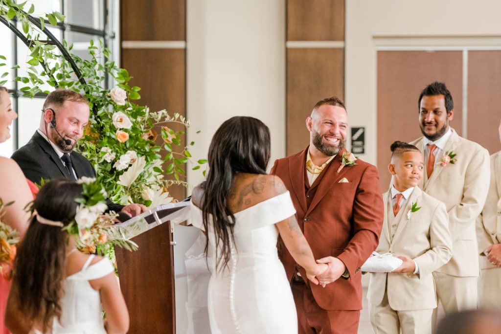 Words can’t describe how beautiful Bri and Tarry’s day was. Though we had surprise pop-up shower of rain, it didn’t dampen anyone’s spirits because Bri and Tarry were just there to celebrate their marriage. Bri is one of the most beautiful people that I know, and Tarry would just light up when he saw her. I loved watching the emotional speeches about Tarry taking care of Bri and her two littles. It’s truly inspiring. This was my first time at the Fives, and I can’t wait to go back again. The team at MMJ Events truly transformed the room and I am digging the autumnal, terracotta vibes. Kuro Neko’s cake somehow looked like real silk ribbon running down the side. I wish I could relive the day over again!