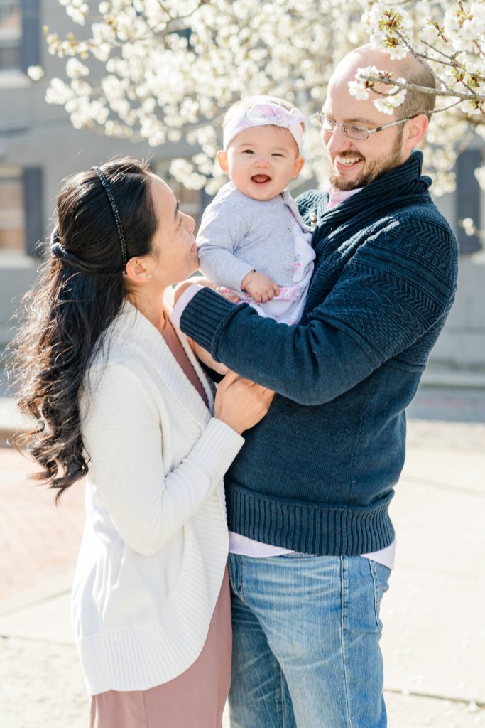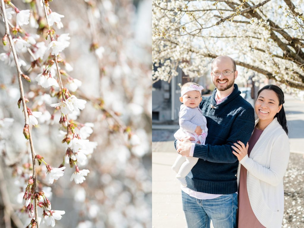 I first met Elaine’s sister, Jolyn, at her wedding, and have had the privilege of getting to know their family as they welcomed their little one. Now I get to meet cousins! We had to push James and Elaine’s session due to the snow, and boy am I glad that happened. I think we were out on the very first day that the Spring trees blossomed. See all the cuteness here: