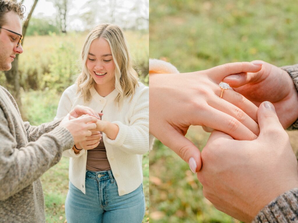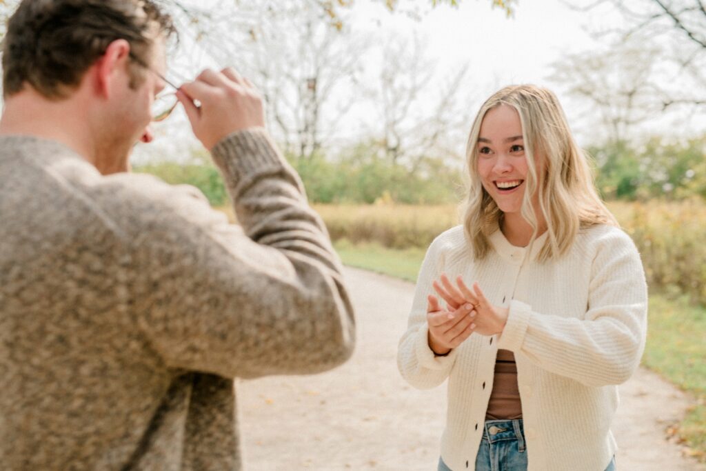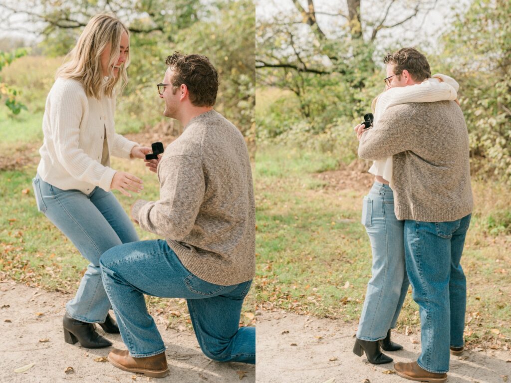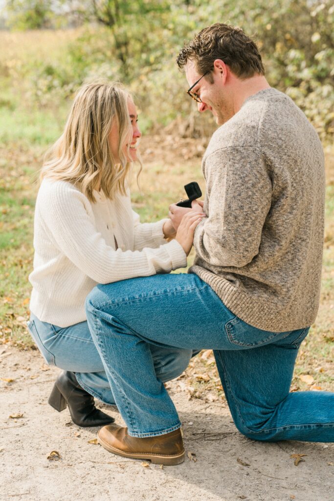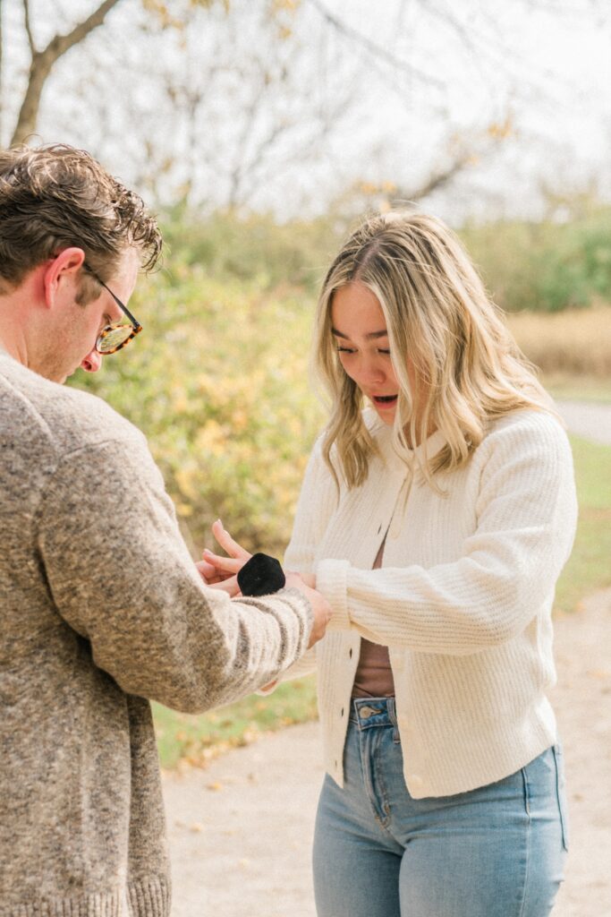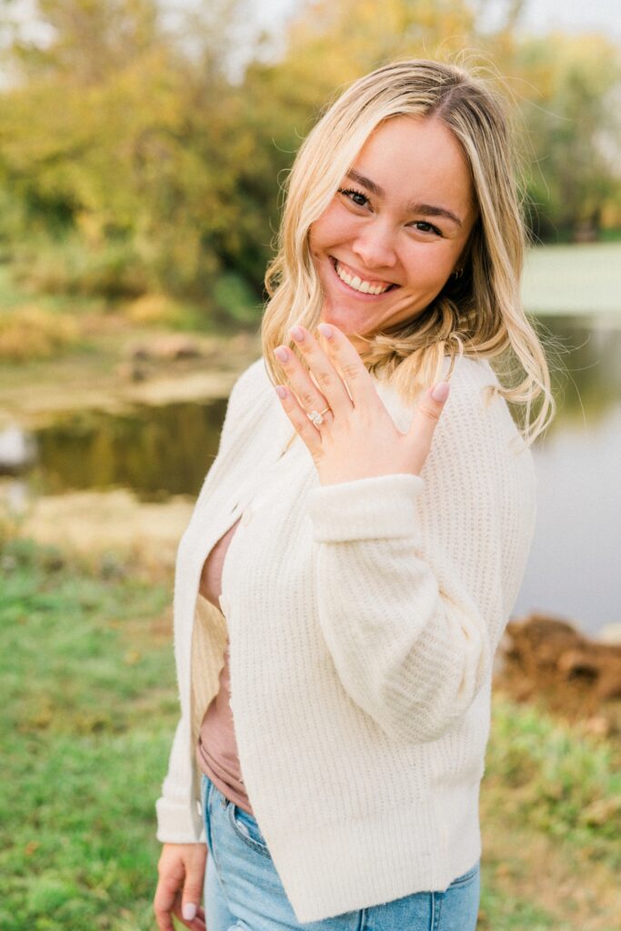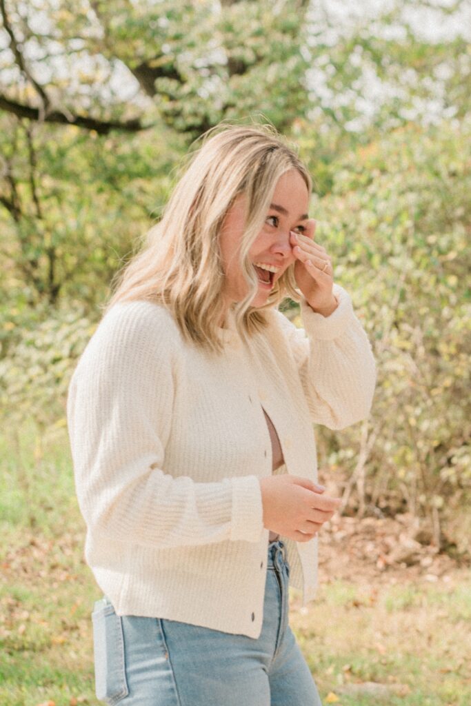 Griffin has been planning this day for a while. He started taking Raegan on walks of the Ohio metro parks, knowing the whole time that one of their last walks would end at a small tree, planted with their names at the bottom. When he brought Raegan under the guise of family photos, she seemed just a tiny bit confused that no one was there yet but them. After showing her the tree, which confused her even more, she turned around and he was down on one knee. Now they can come back to this same spot year after year, watching the tree grow as they do. I’m so excited that I got to be there to capture this moment for the two of them.