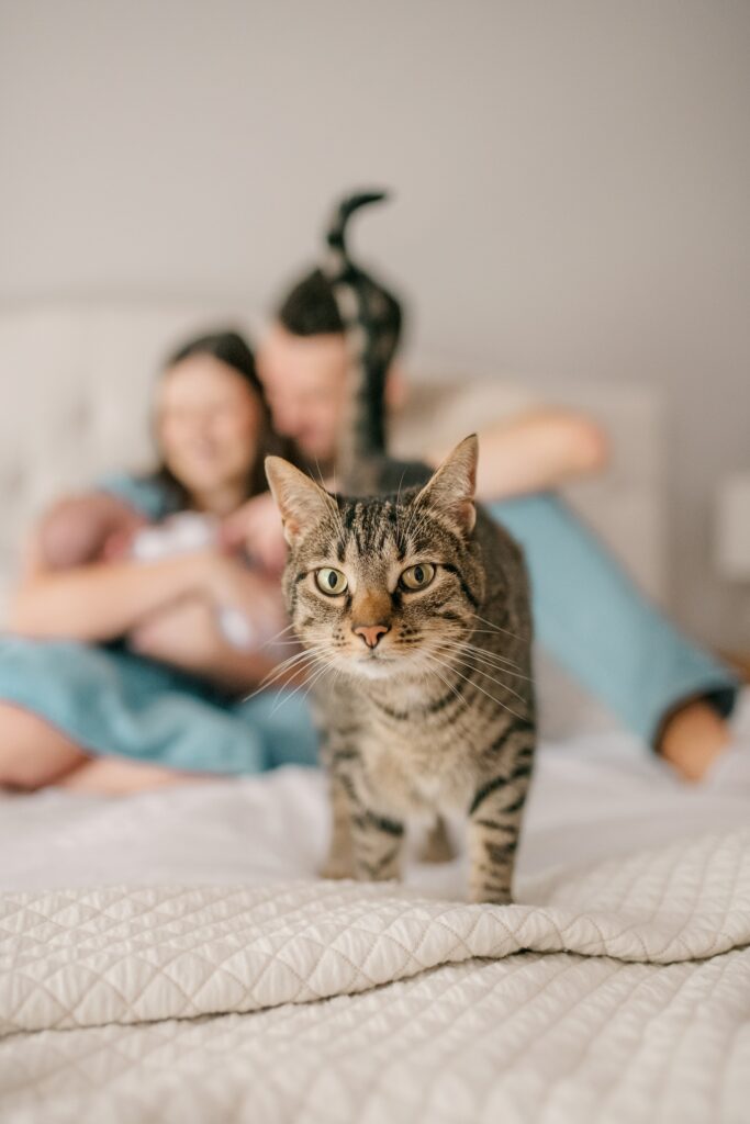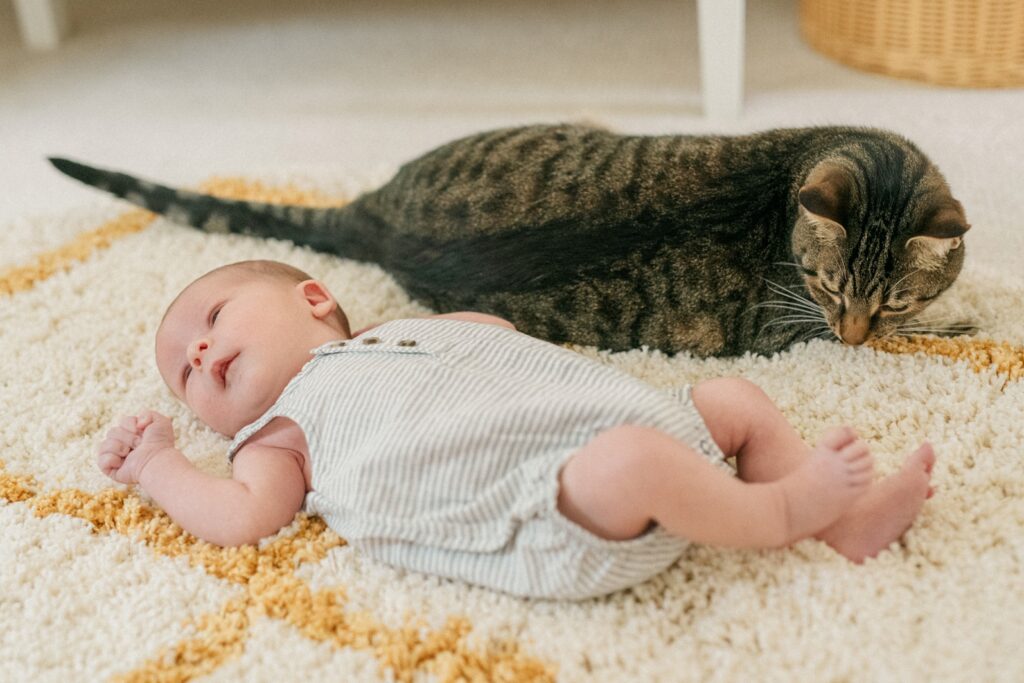There’s nothing quite like the quiet magic of a newborn session — those first sleepy stretches, tiny fingers curled around mom or dad’s hand, and the peaceful calm that seems to wrap around the whole house. But during this little boy’s newborn session, we had an extra special visitor who ended up stealing the show: his big cat sister.