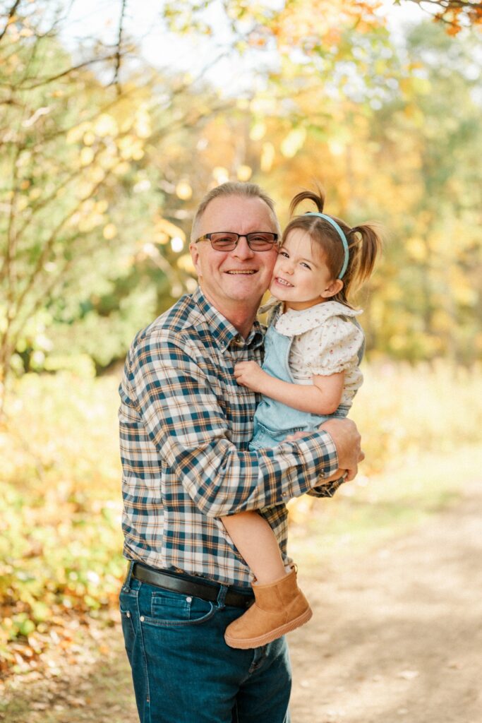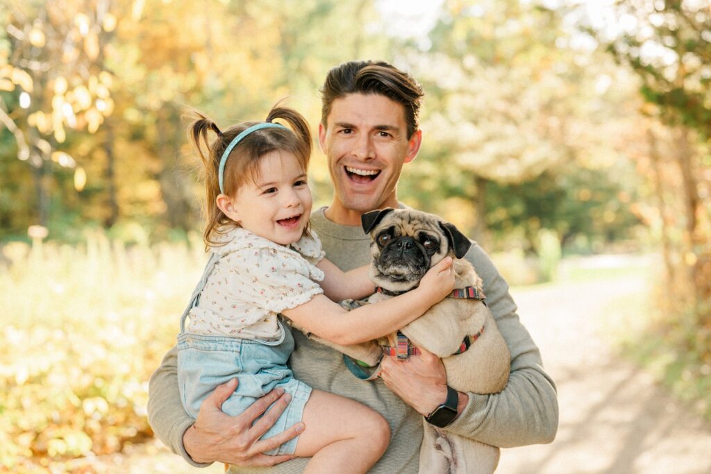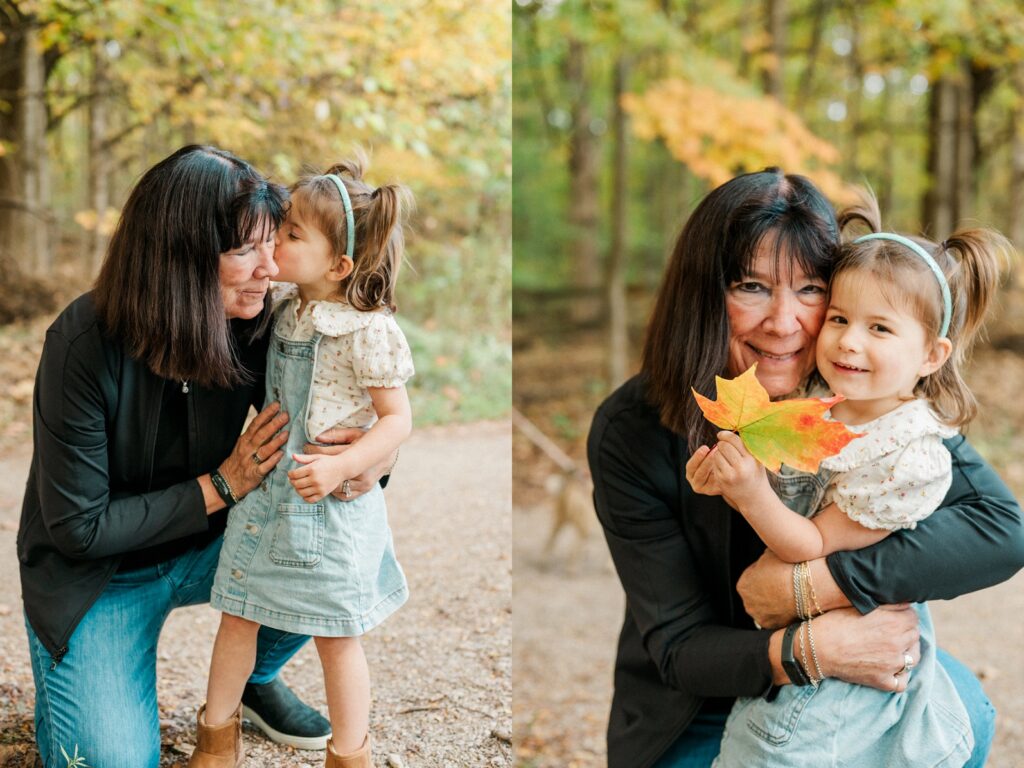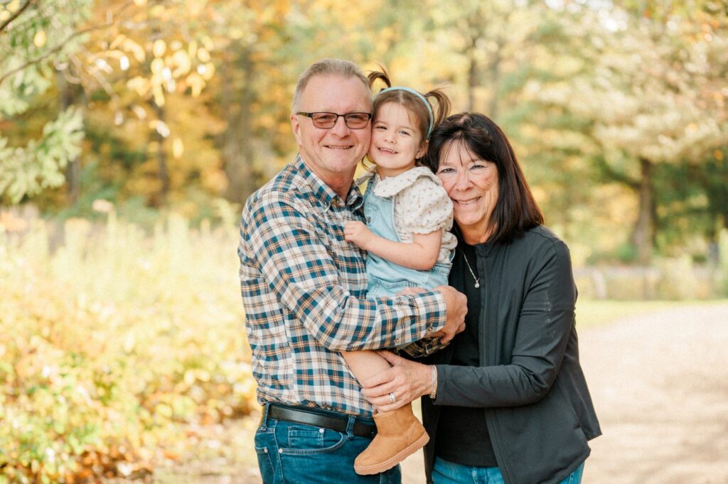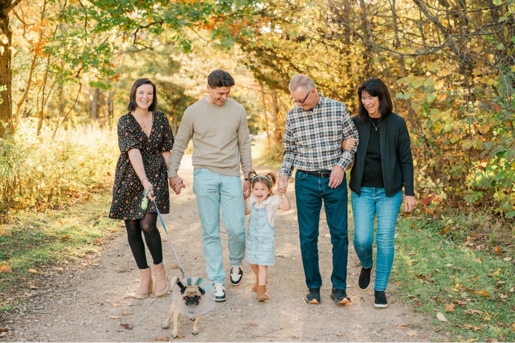 We started the session with Grandma and Grandpa — a must whenever everyone’s together. Then, of course, we had to include Pickles, the family dog, who was thrilled to be part of the action (and maybe even stole the spotlight once or twice). Between chasing leaves and giving kisses, Pickles made sure there were plenty of giggles.