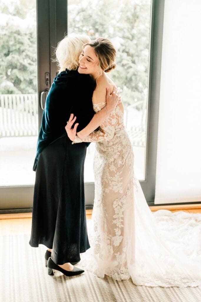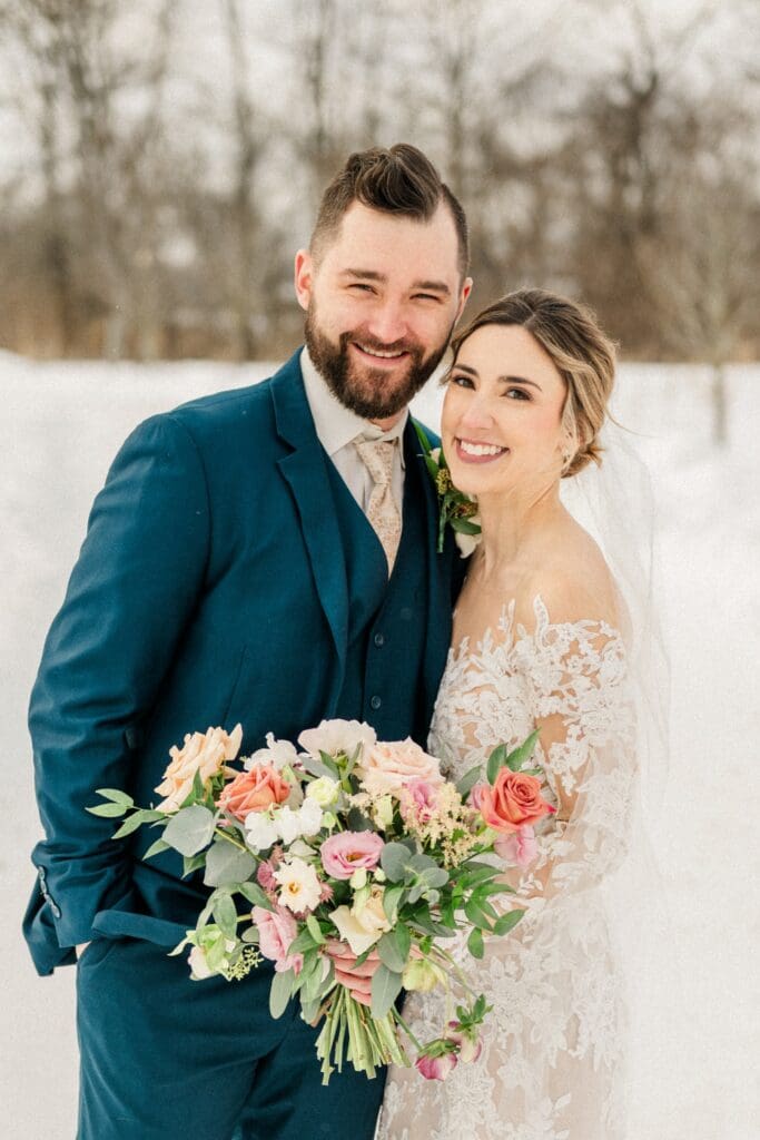 Amanda had one very specific wish for her wedding day: snow. And wow — Ohio absolutely understood the assignment. The week leading up to their wedding brought record‑breaking cold temperatures and over a foot of snow (including a full week of school cancellations). The result? The entire Jorgensen Farm property was transformed into a true winter wonderland. Snow-covered trees, crisp air, and that quiet, magical stillness you only get after a big snowfall — it was breathtaking. Even though it was supposed to feel like -14 degrees that day, we bundled up and ran outside for exactly three minutes to capture photos of just the two of them in the snow. I’m so, so happy we did — those quiet, snowy moments felt just as meaningful as they were beautiful.