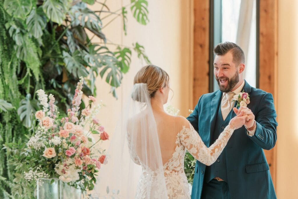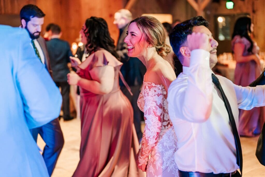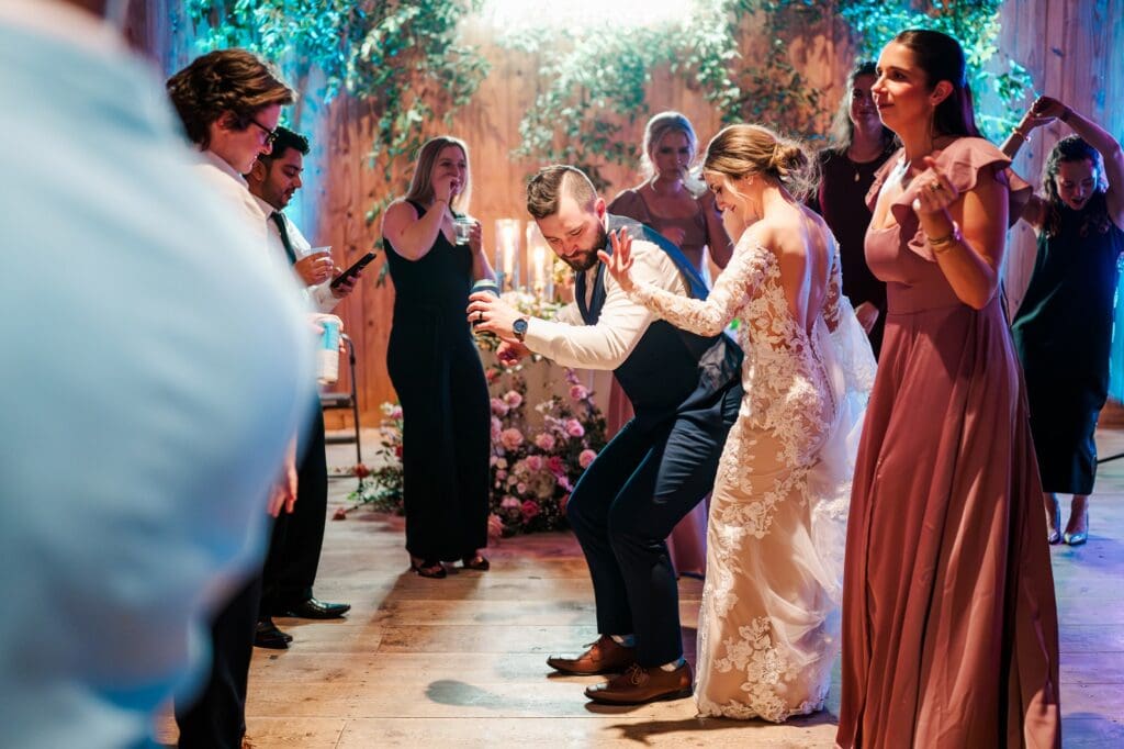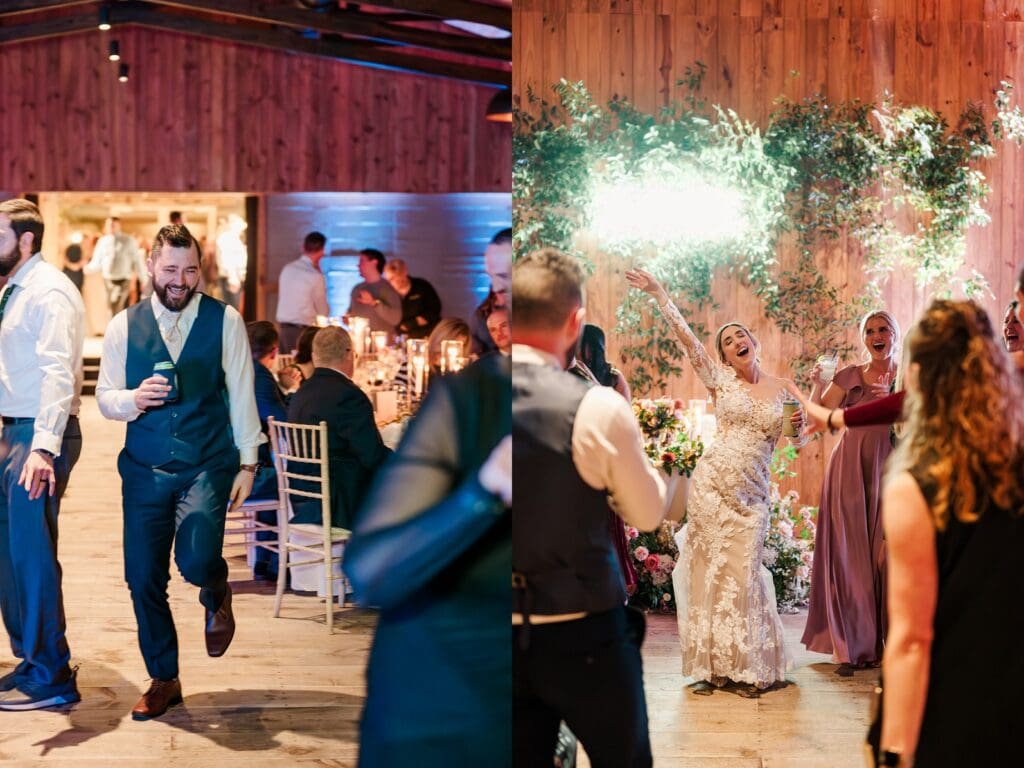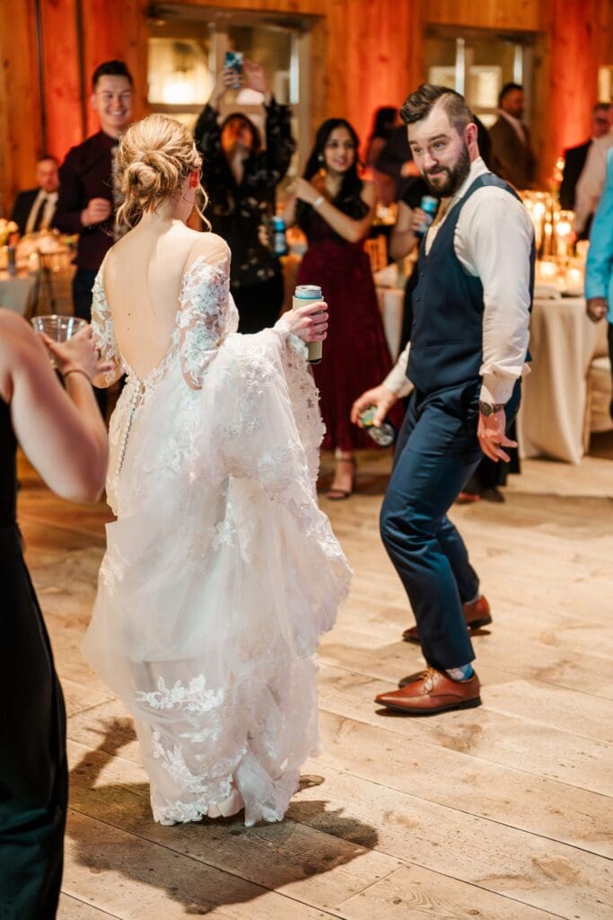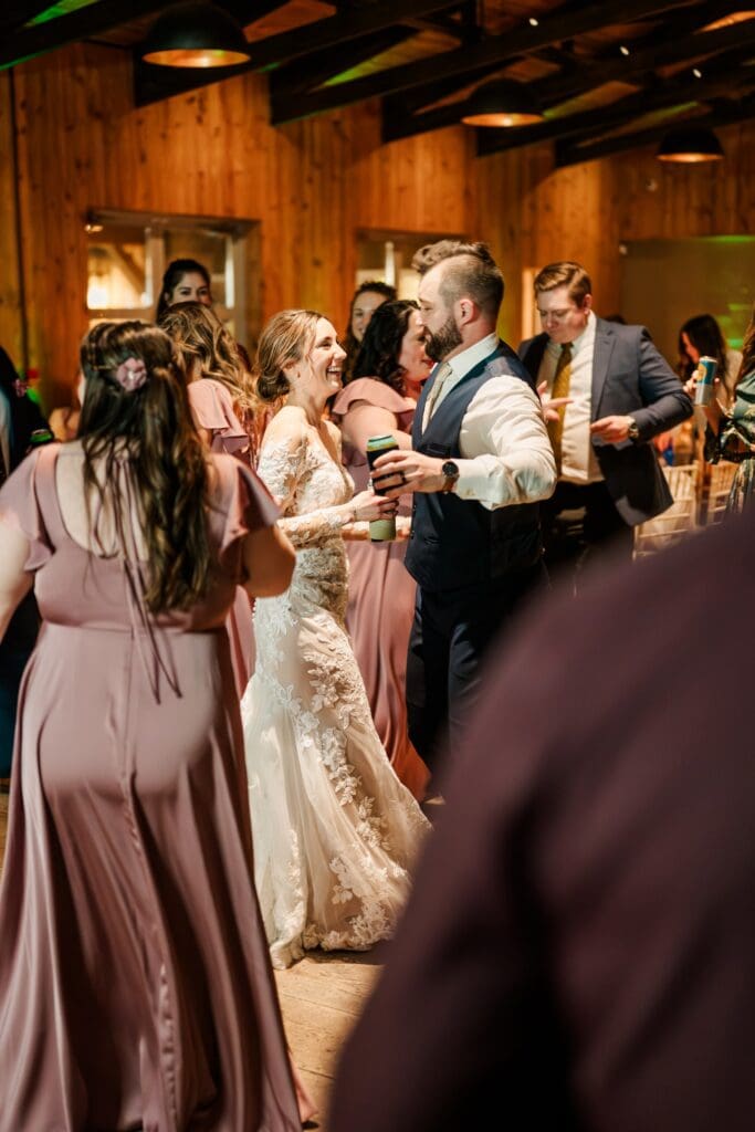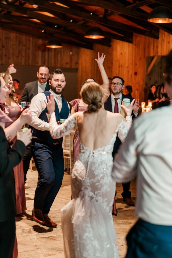 And then came the celebration — which perfectly reflected Amanda and Collin’s joy‑filled, people‑first hearts. One of the most important things to them was actually being present with their guests. They made time to attend cocktail hour, mingle, laugh, and soak it all in instead of being pulled away. The rest of the night? You could find them on the dance floor the entire time. From start to finish, the energy never dipped — including an unforgettable conga line led by DJ AXCESS, who kept the party going all night long.