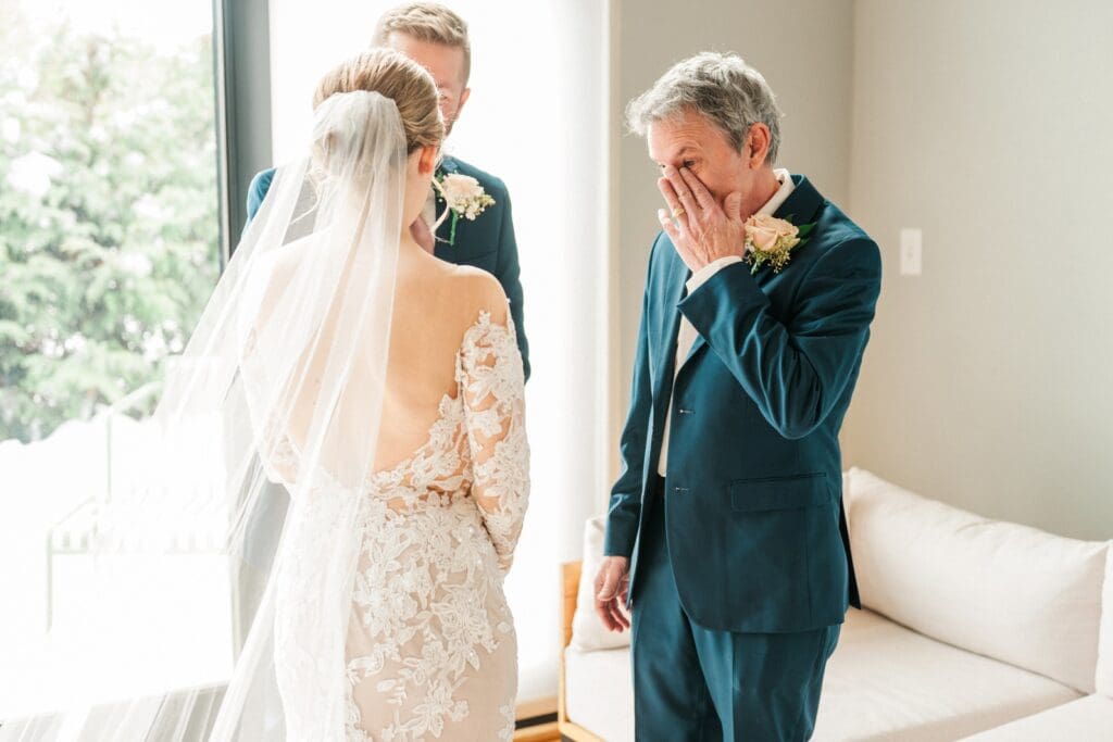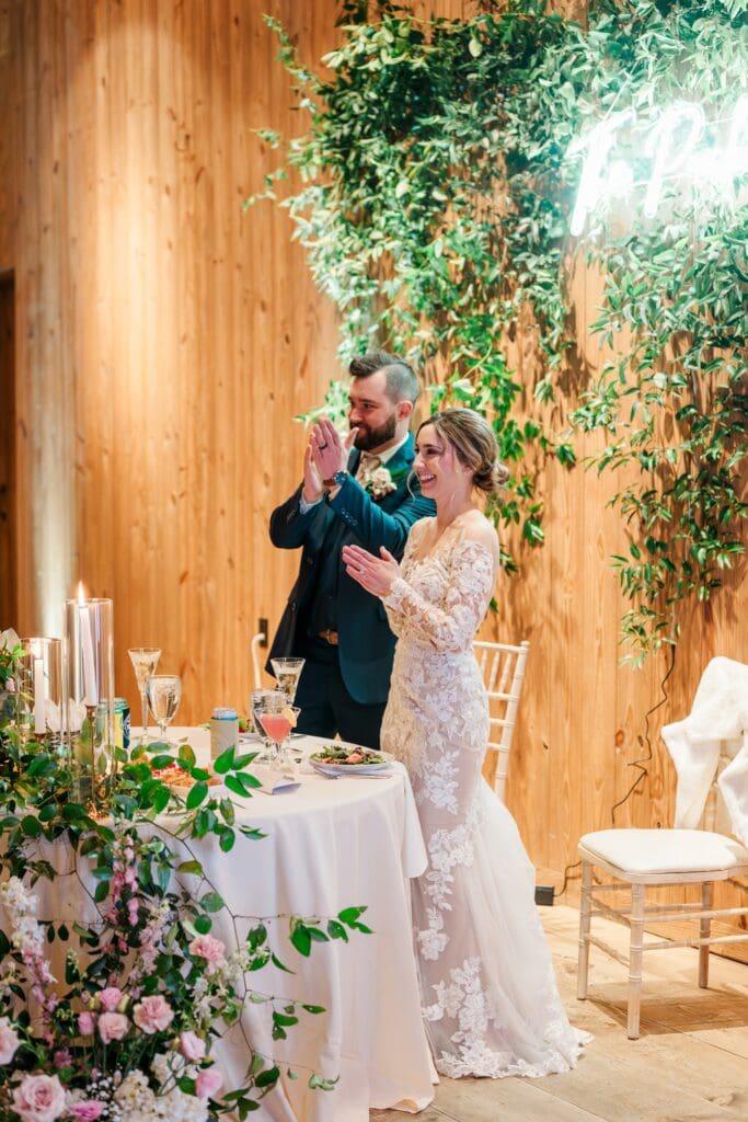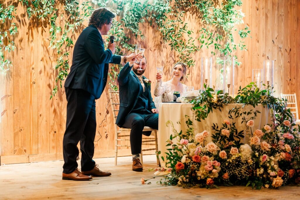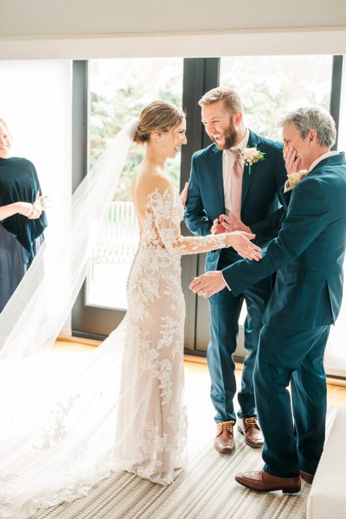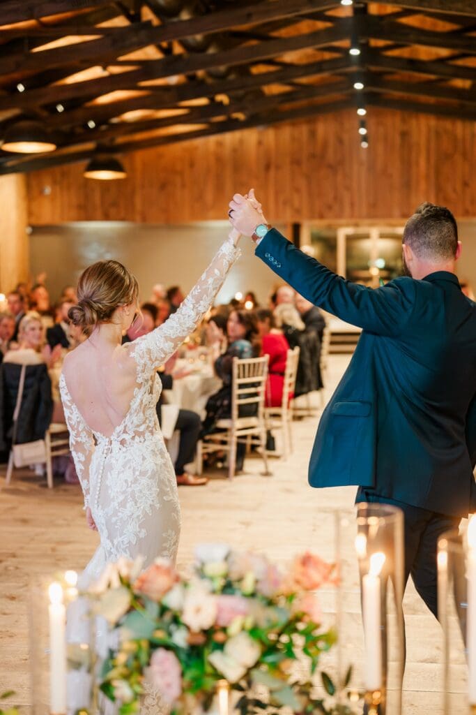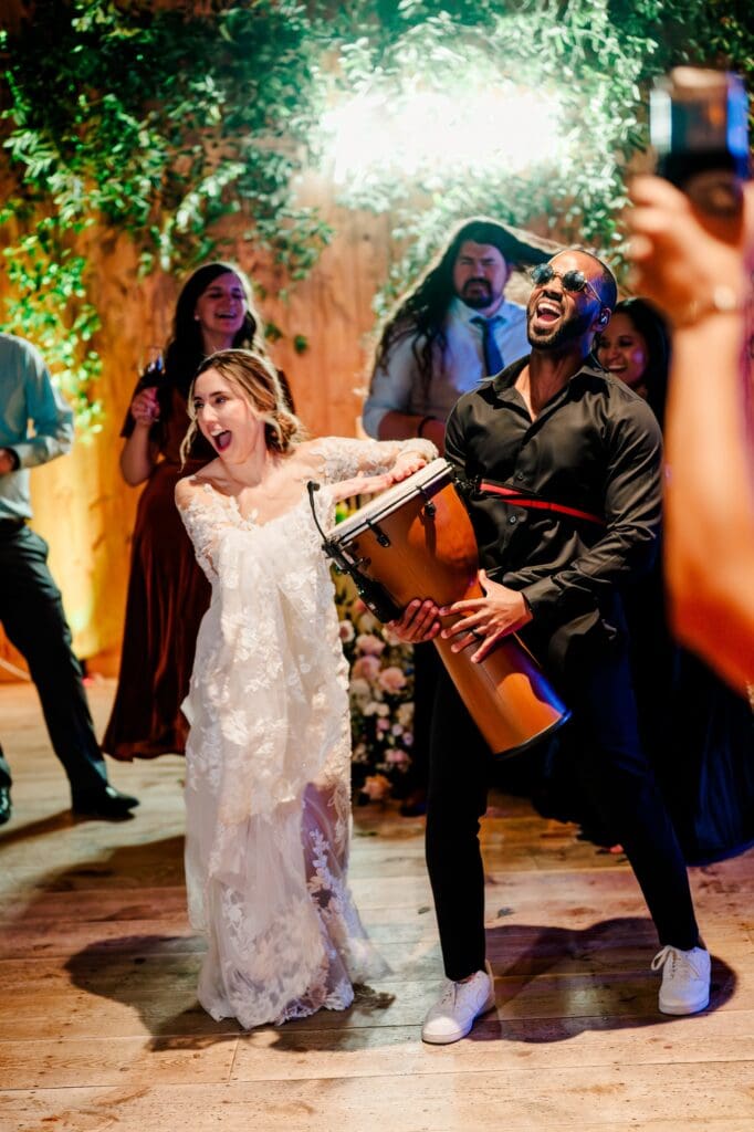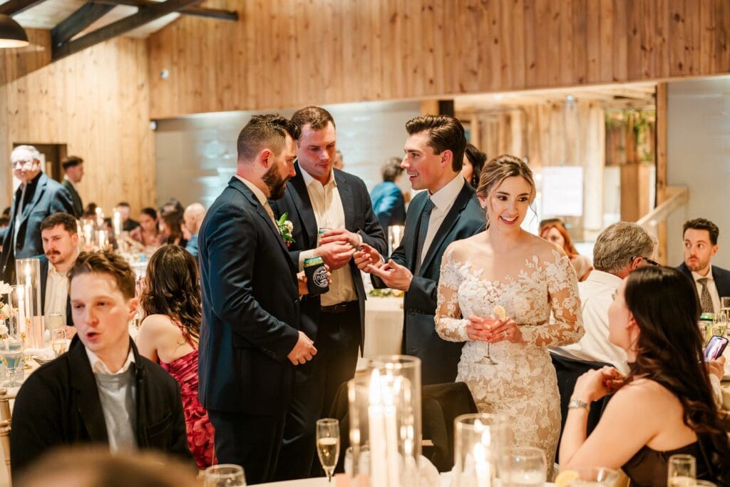 And then came the celebration — which perfectly reflected Amanda and Collin’s joy‑filled, people‑first hearts. One of the most important things to them was actually being present with their guests. They made time to attend cocktail hour, mingle, laugh, and soak it all in instead of being pulled away. The rest of the night? You could find them on the dance floor the entire time. From start to finish, the energy never dipped — including an unforgettable conga line led by DJ AXCESS, who kept the party going all night long.
