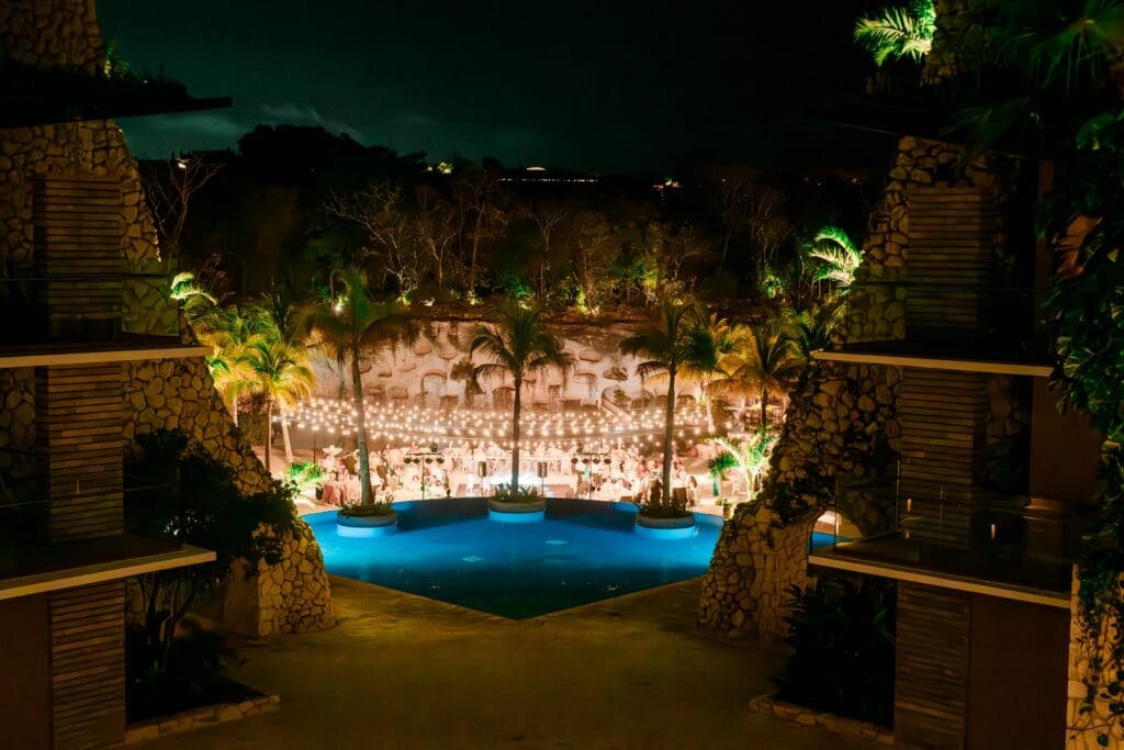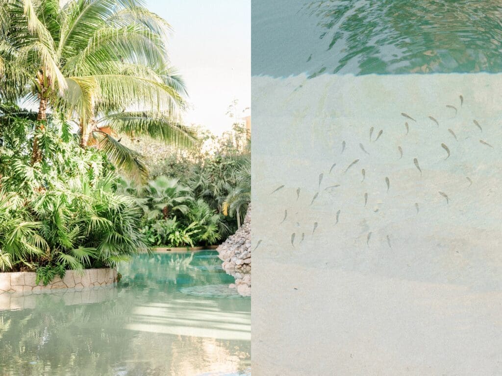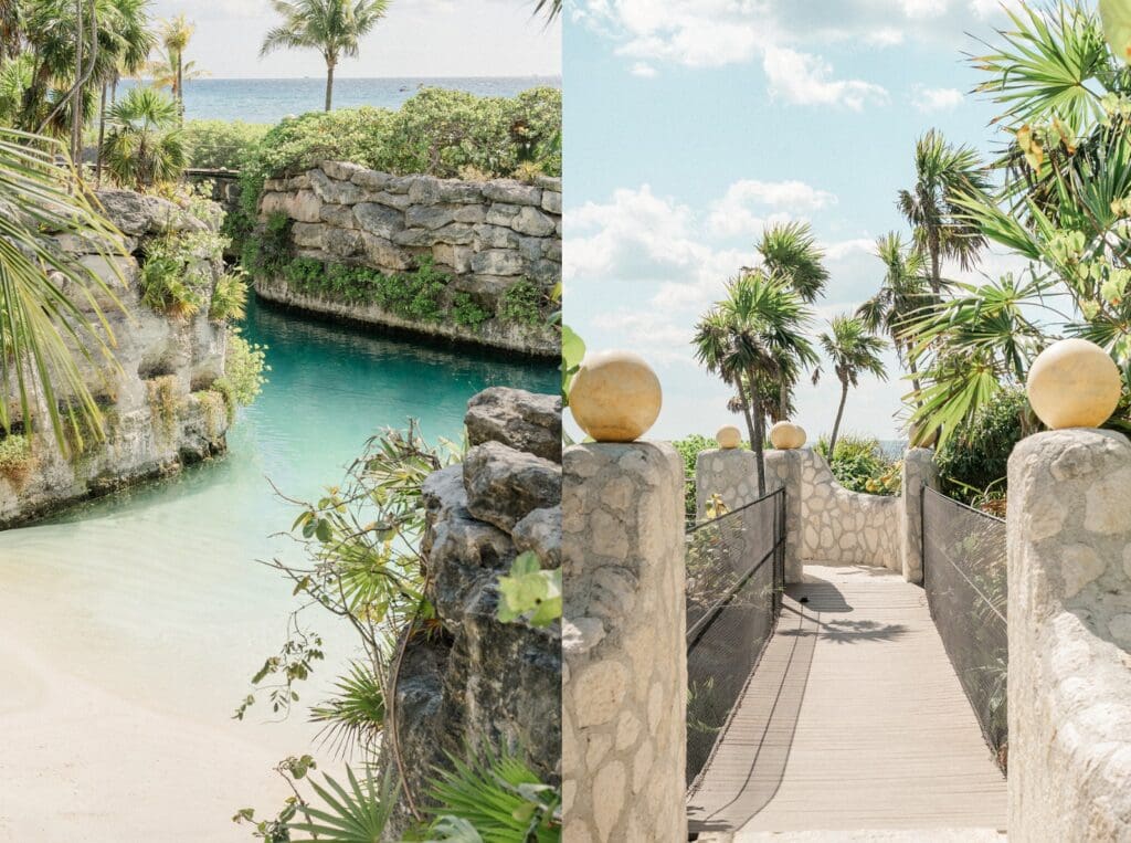 Cody and I arrived several days early so we could explore the resort and learn our way around before the wedding festivities began. I’m so glad we did, because Hotel Xcaret is absolutely expansive. The property winds through jungle pathways, stone bridges, rivers, and oceanfront cliffs, and every turn feels like discovering a new hidden corner of paradise.