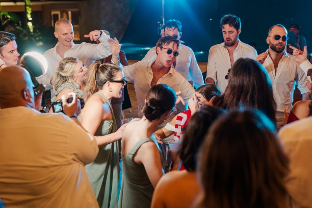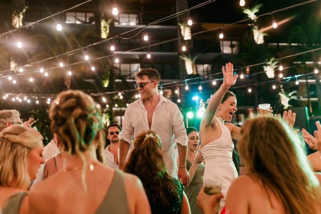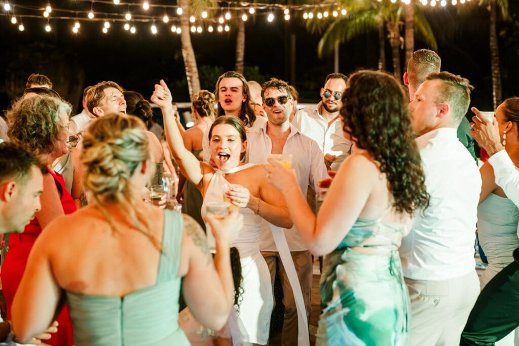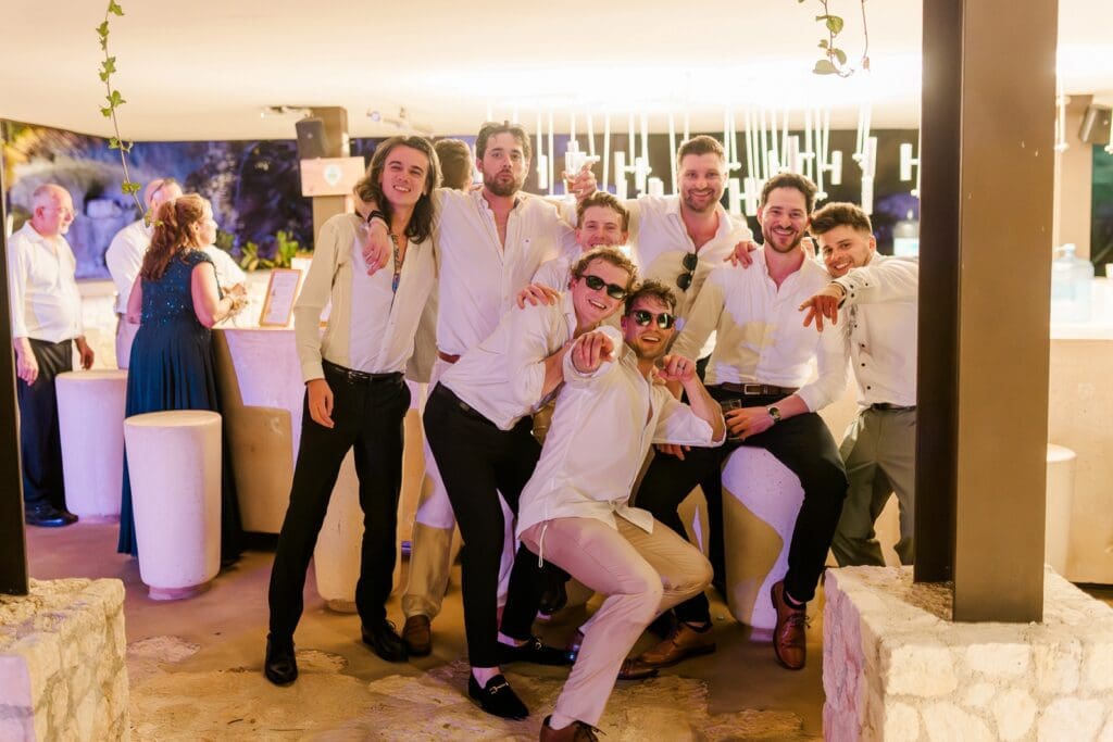 The next morning everyone gathered again for an all-day catamaran trip to Isla Mujeres. The turquoise water, sunshine, music, and laughter made it feel like the perfect continuation of the celebration.